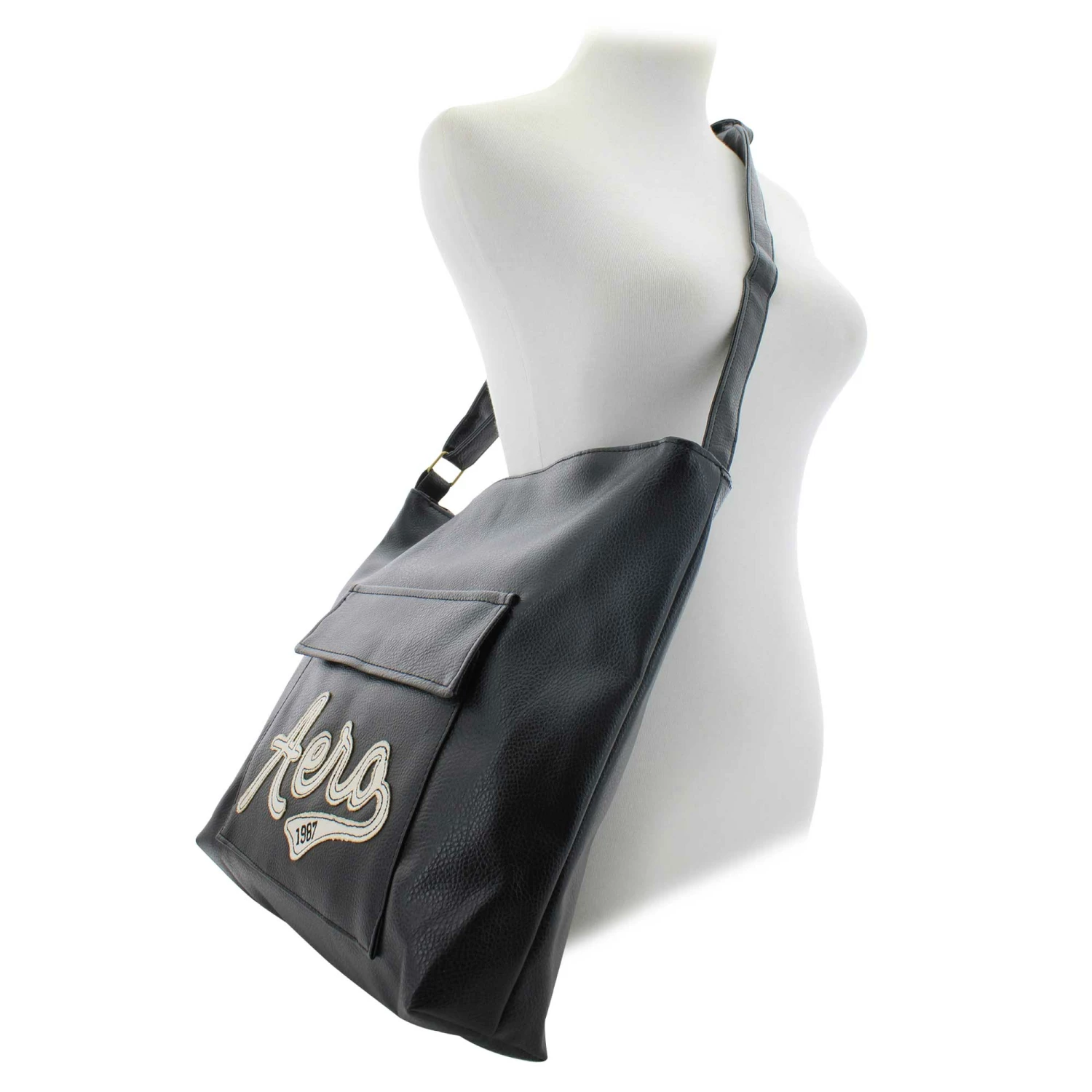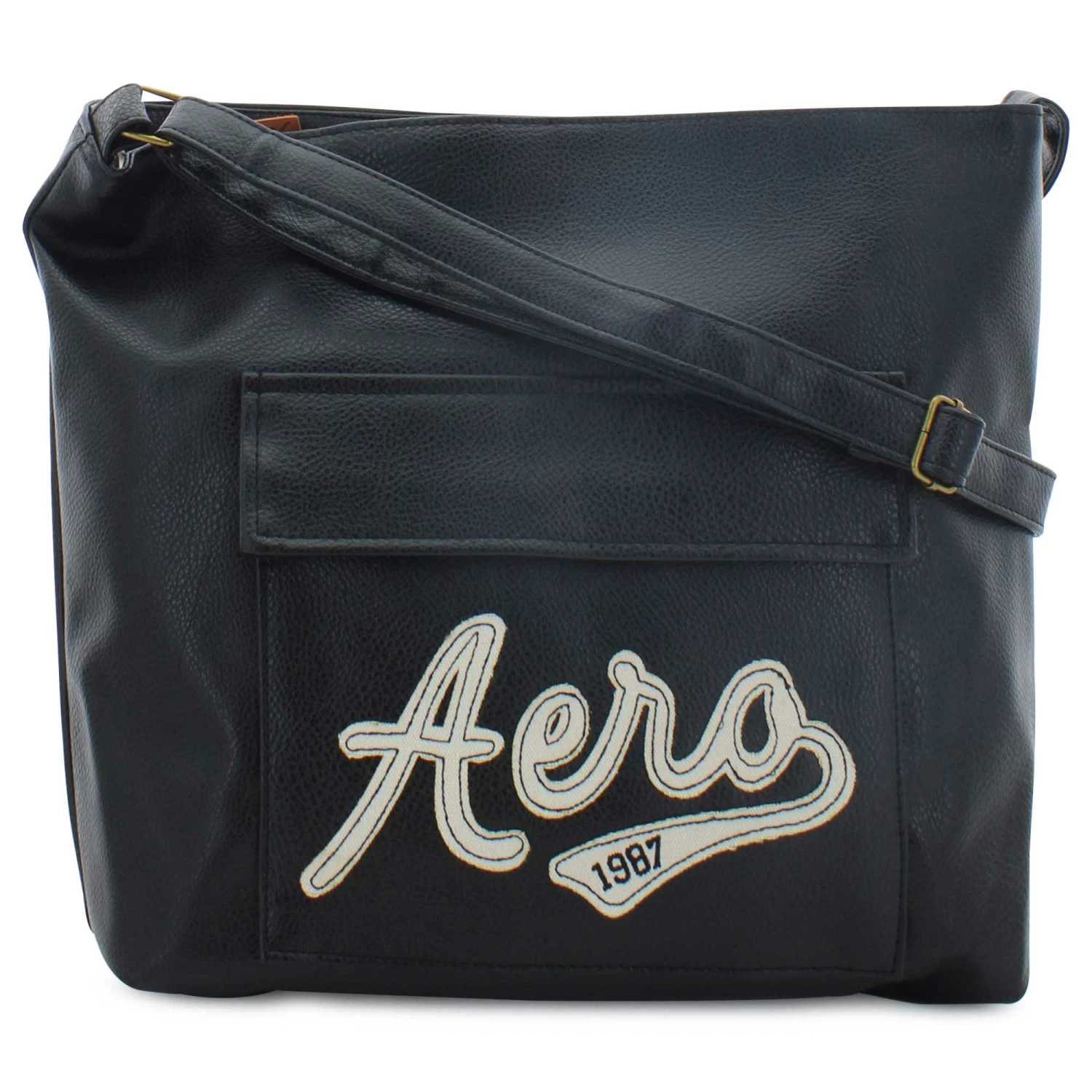 - faux-leather with a stitched Aeropostale logo patch on the front