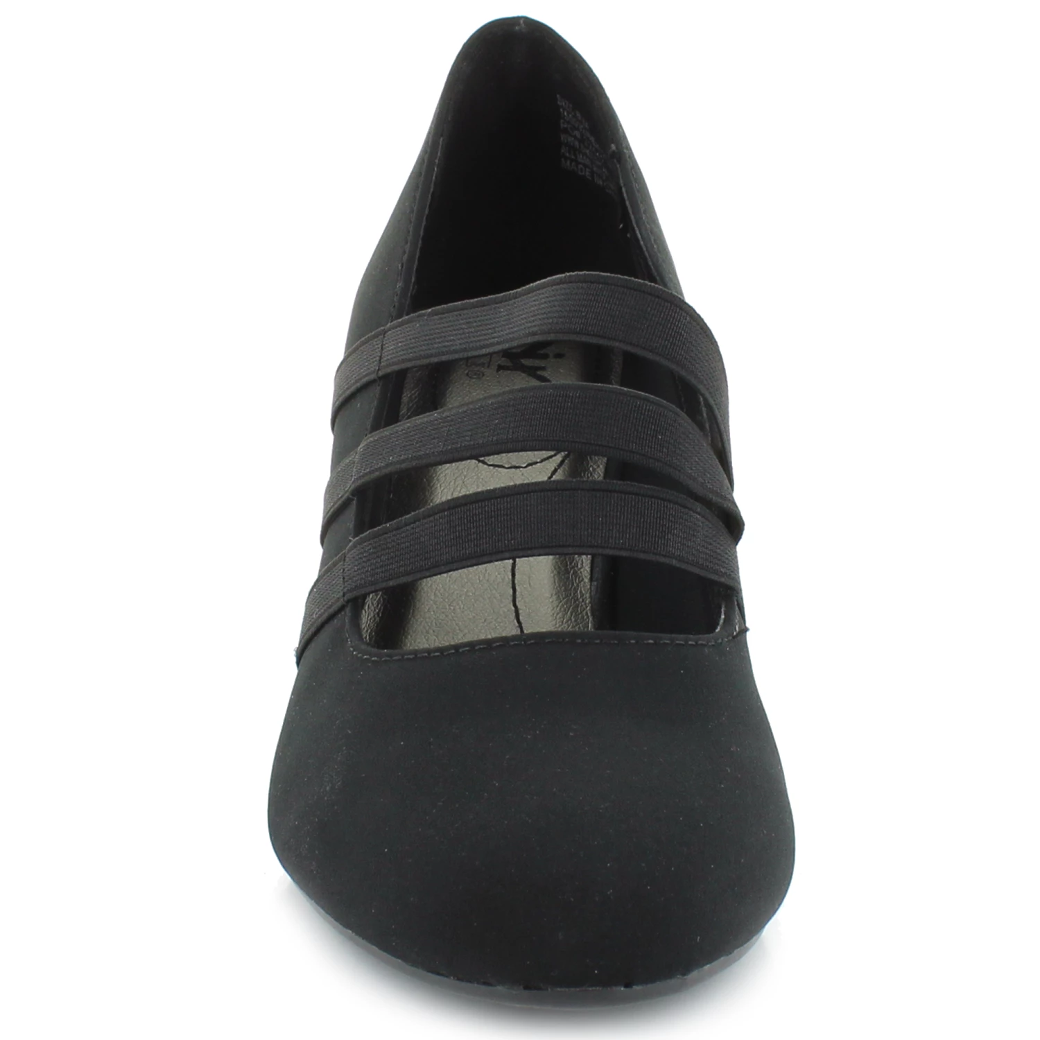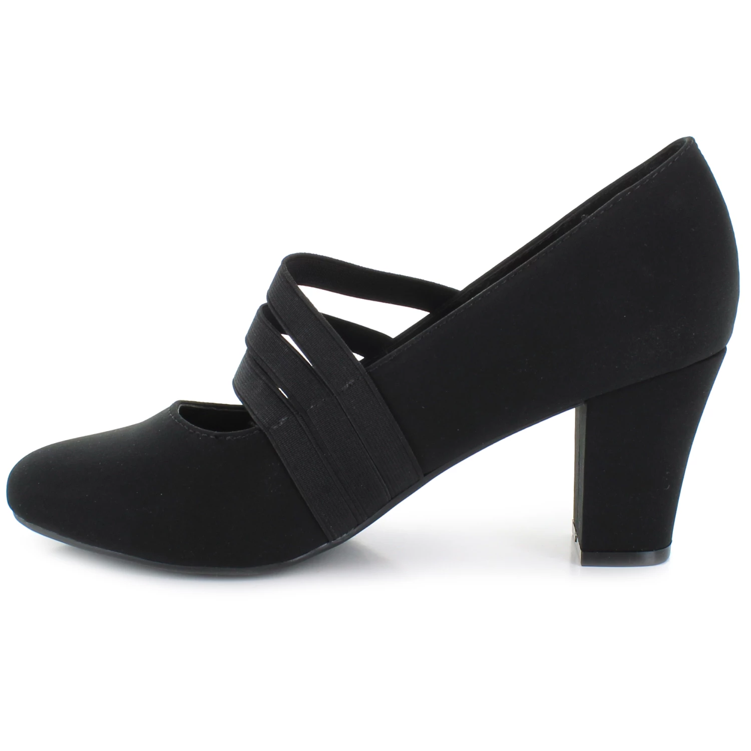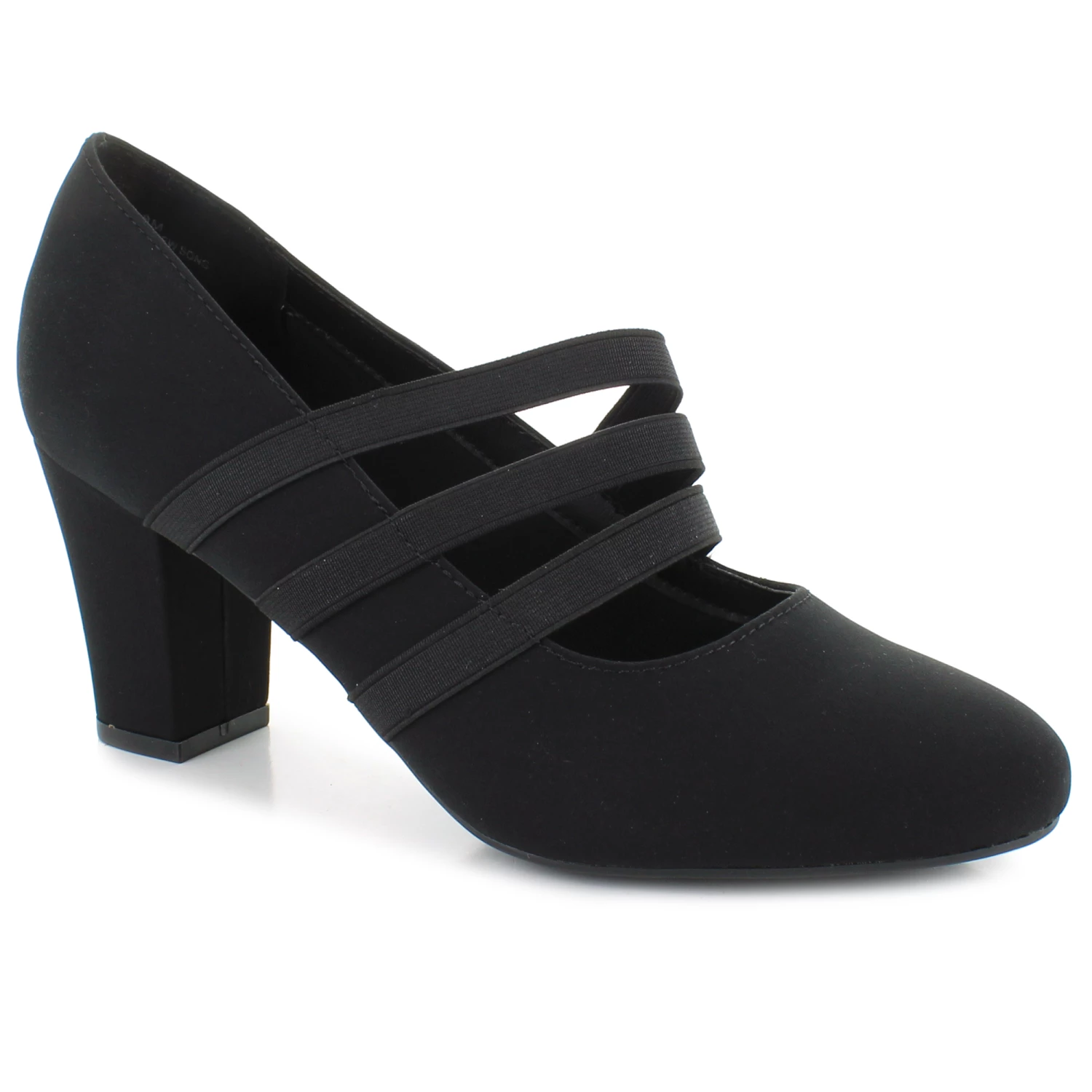 Bring a sophisticated look to your wardrobe with the Marbella Rachel. This stylish pump features a block heel and stretch elastic straps for a snug and comfy fit. The cushioned comfort insole will provide a comfy wear.