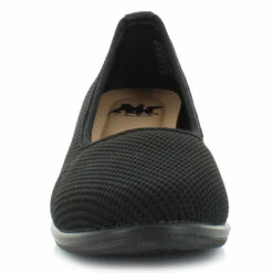 Lightweight and comfy slip-on by Air Flex. This style features a stretch fabric upper with a comfort cushioned insole. The wedge heel will provide just the right height.