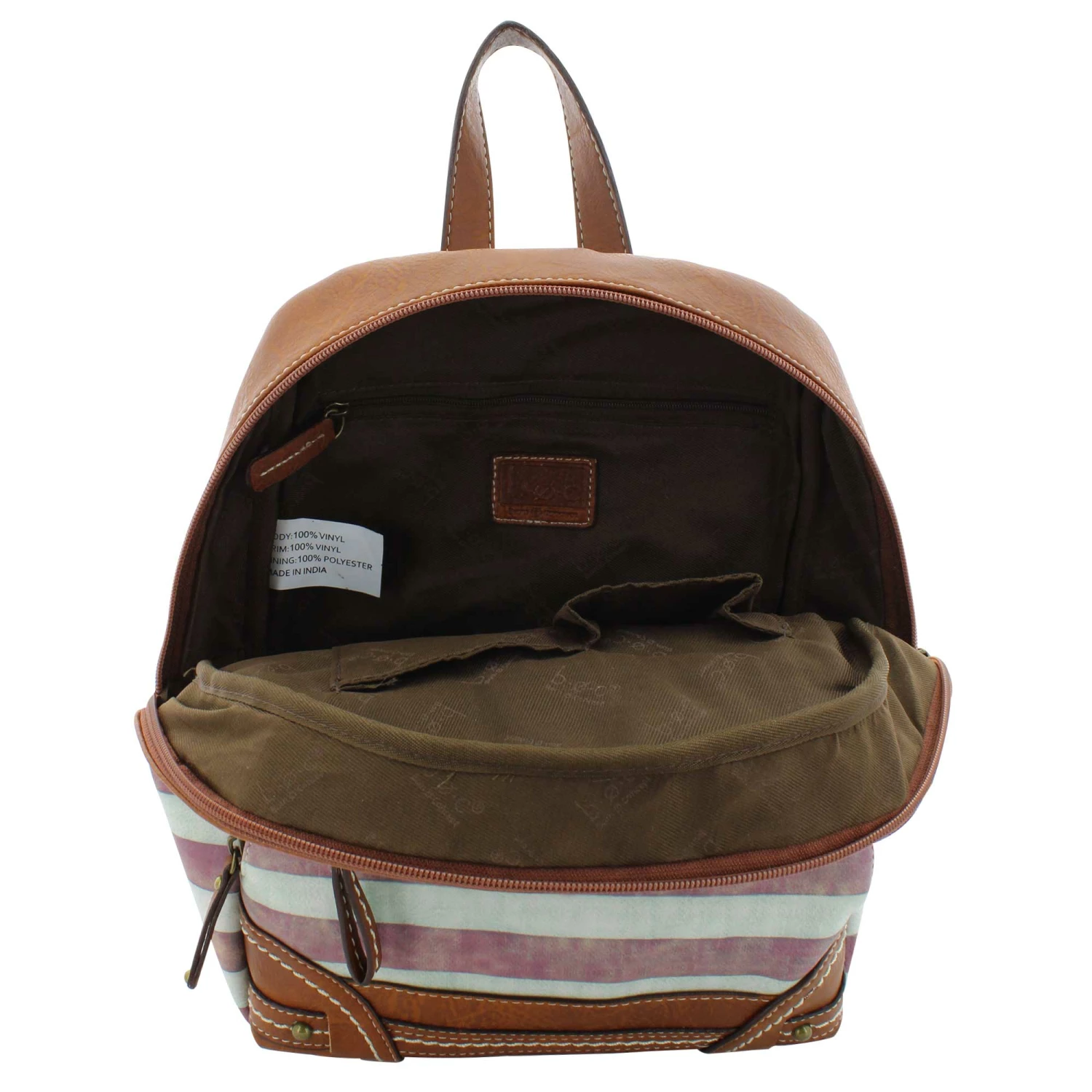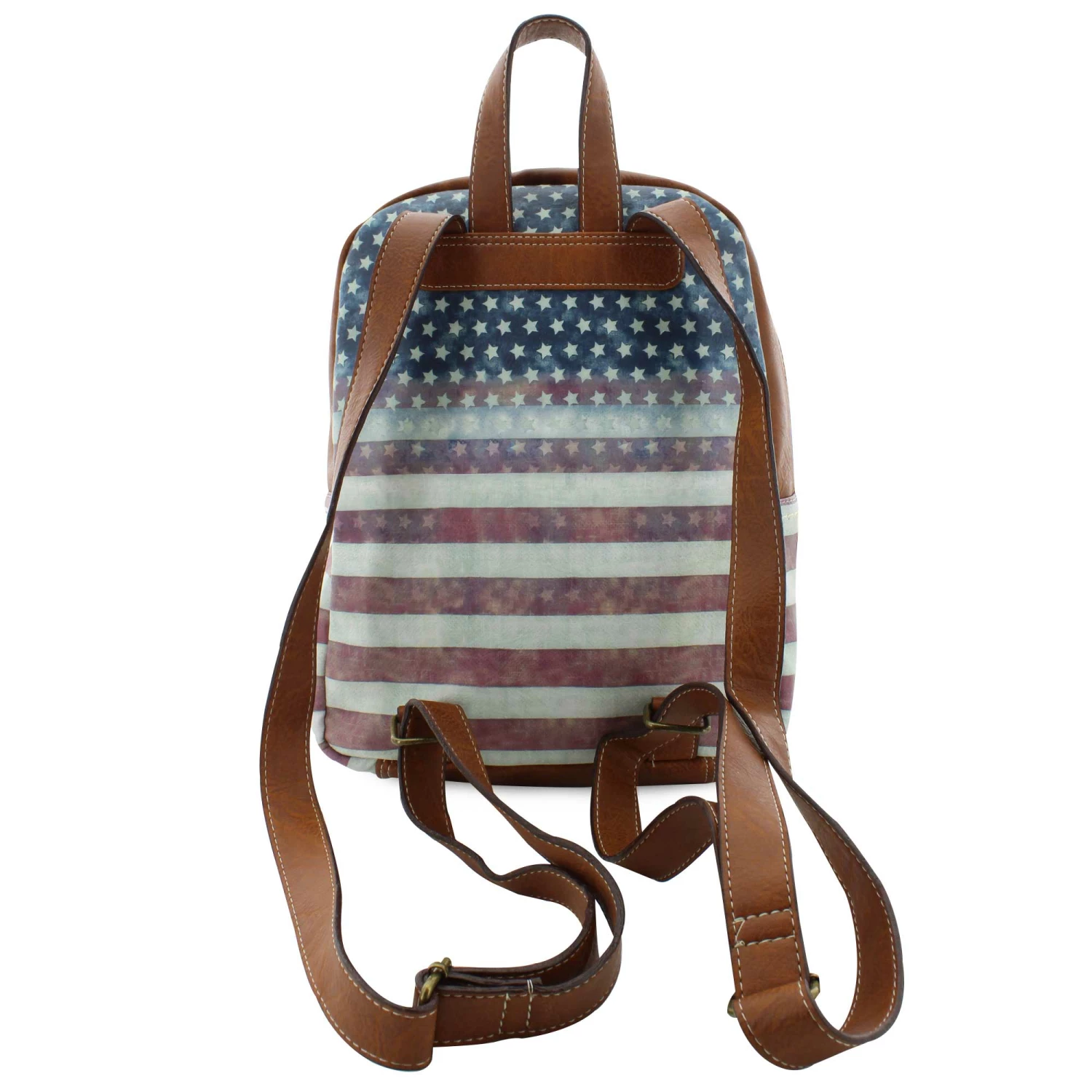 Show your patriotism with this fabulous b.o.c. mini backpack purse. It has a rustic faded red, white and blue theme with complementing faux-leather trim accents. This bag can be worn as a backpack, as a sling, or carried by the handle for plenty of options. Shop SHOE DEPT. ENCORE today.