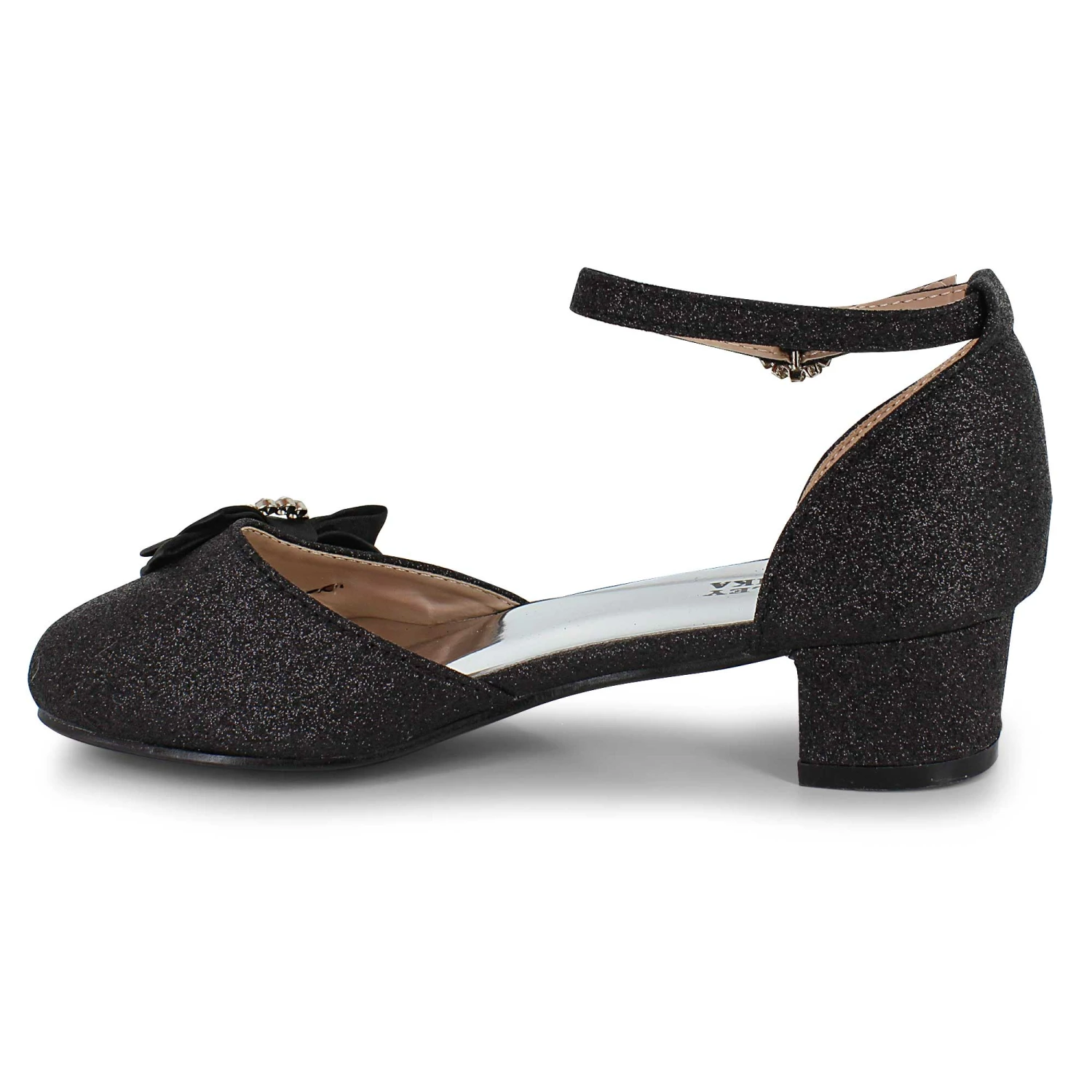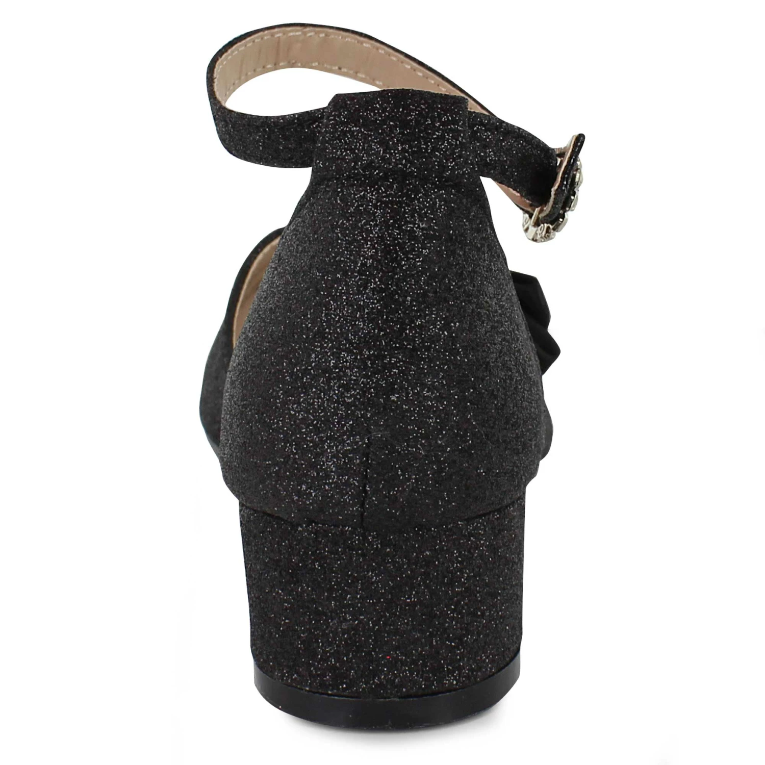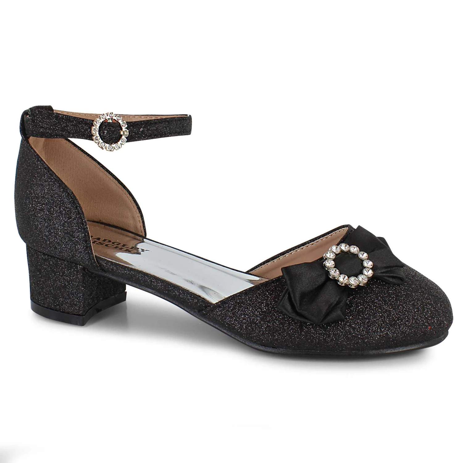 - decorative bow and buckle with rhinestone accents