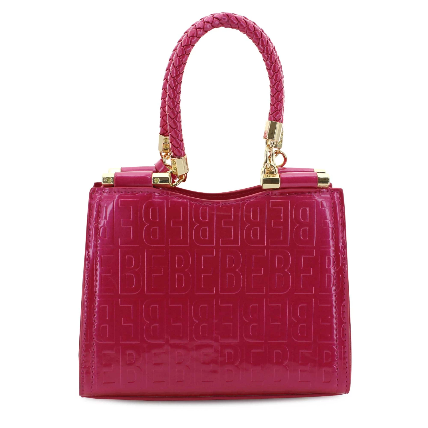 - faux-patent leather upper with repetitive raised bebe logo detail