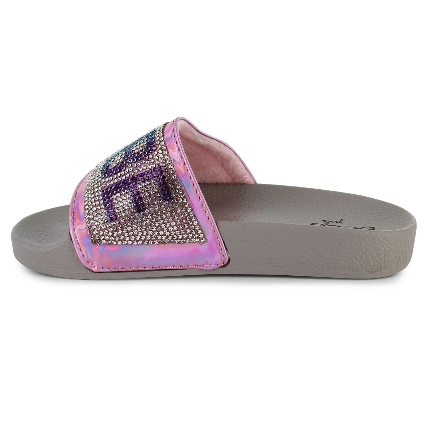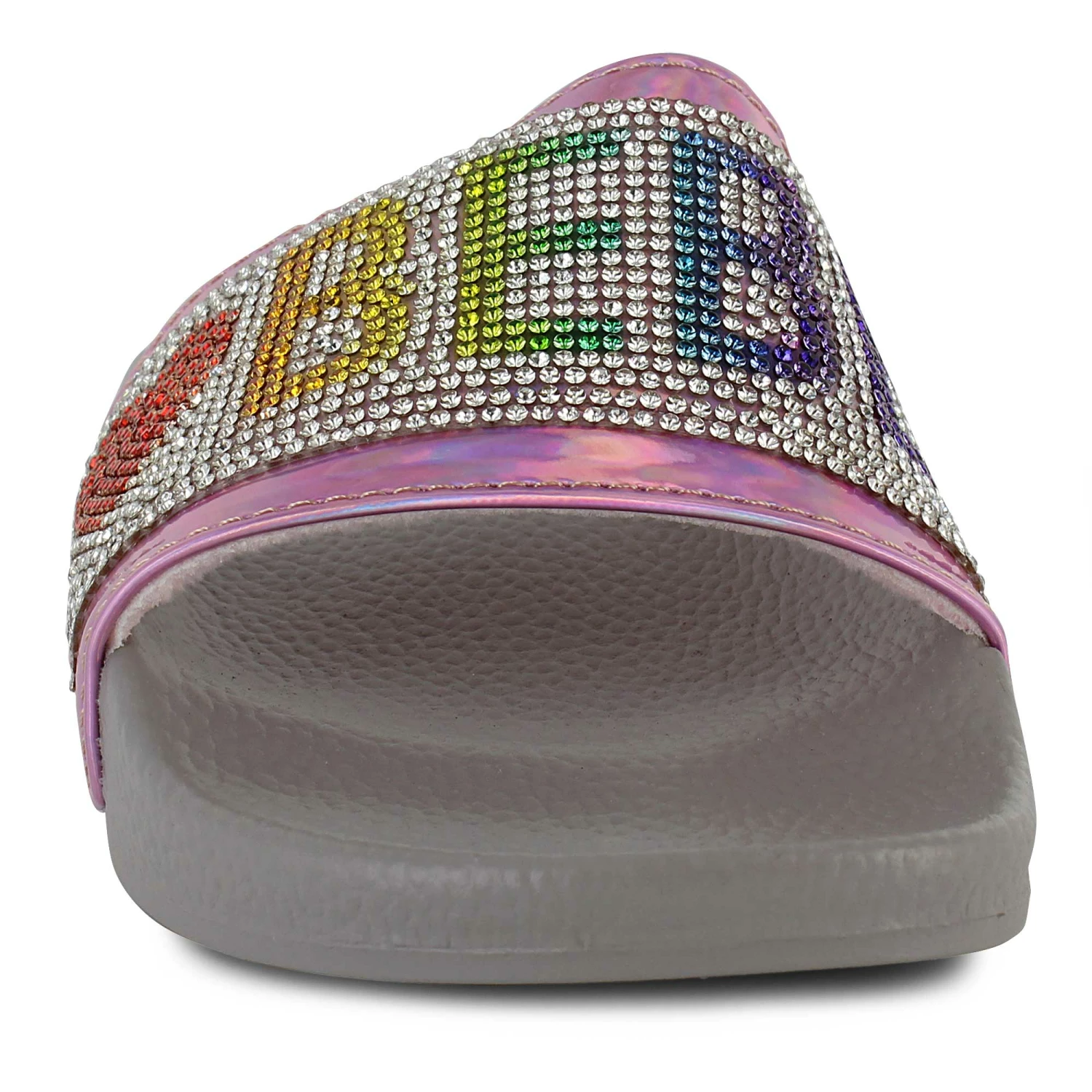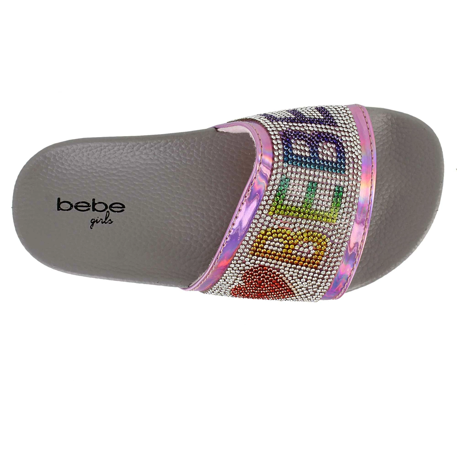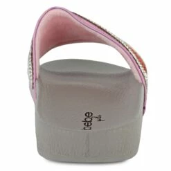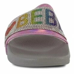 Show off your style in these colorfully glitzy Bebe footbed sandals. The soft slip-on design is great for when you need to get moving fast. Pair them with casual jeans and shorts or mix it up with playful dresses for a weekend spent with friends.