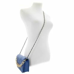 - chain and faux-leather braided shoulder strap with 21″ drop and short chain hand strap with 3.5″ drop