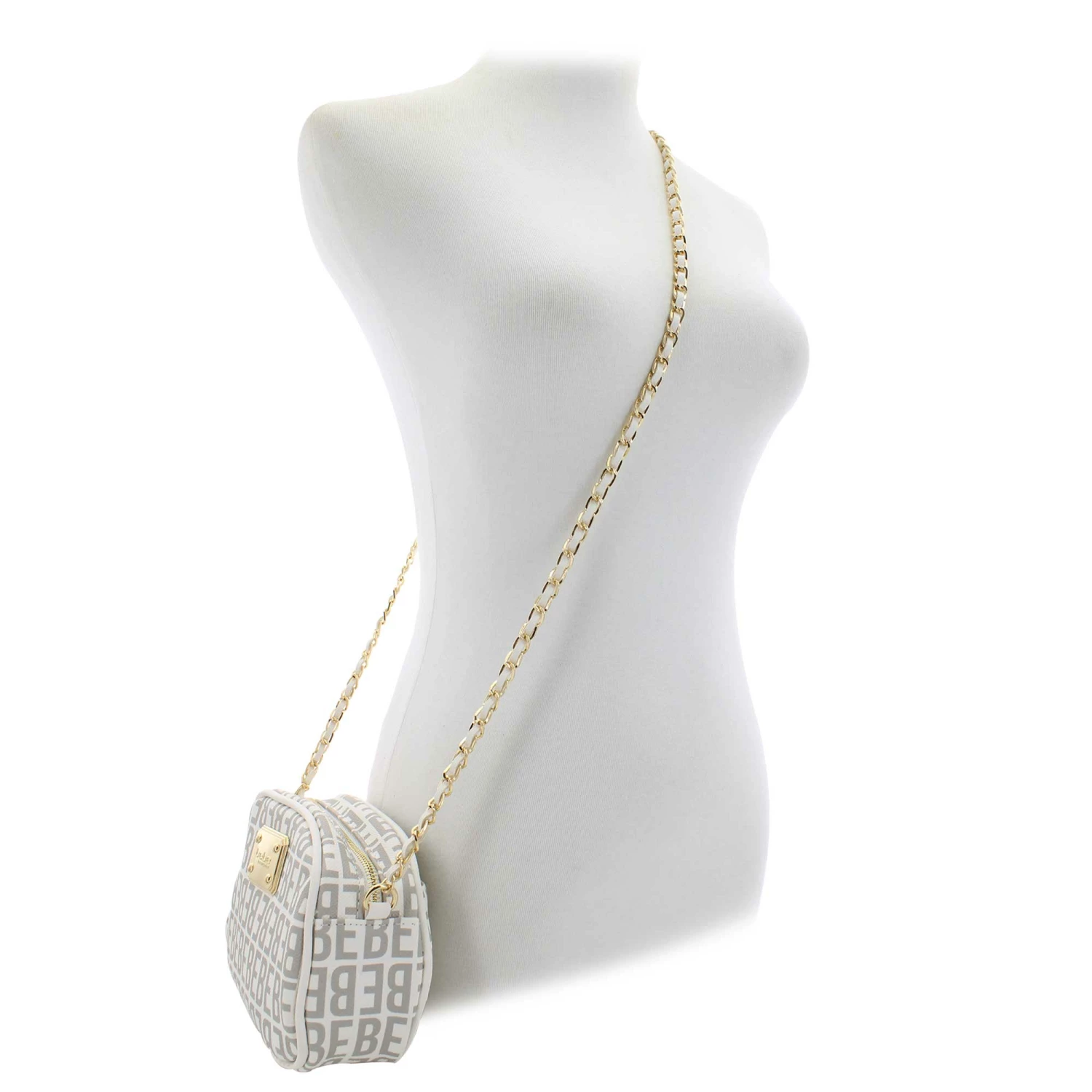 - gold-toned bebe logo on front