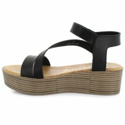 - large elastic strap across top of foot for style and a secure fit