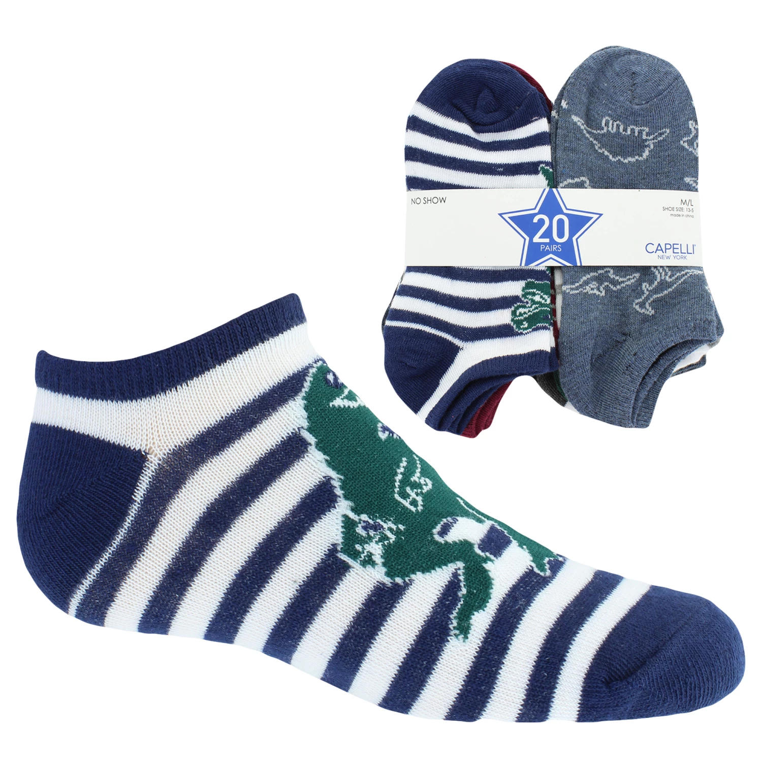 Boys’ Capelli T-Rex No-Show 20-Pair Pack