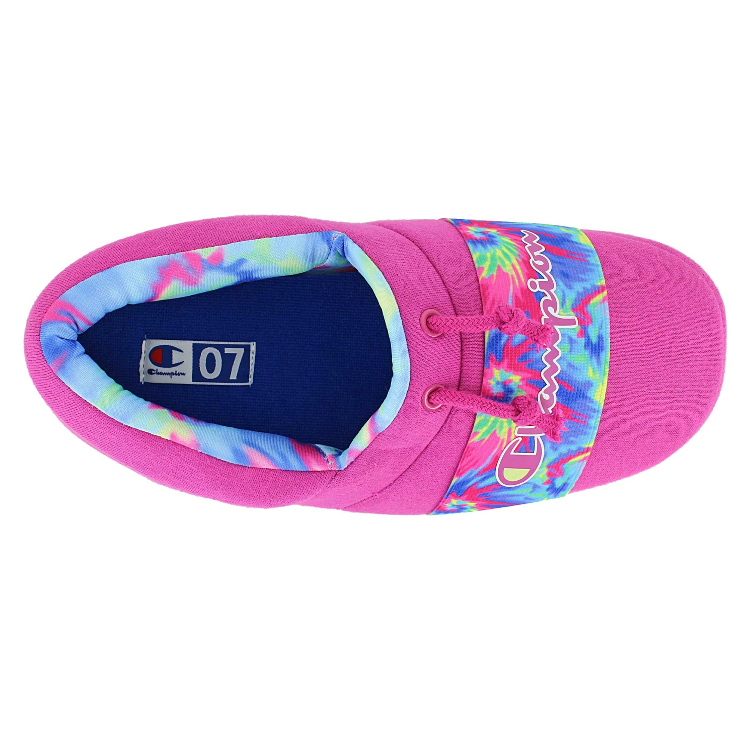 - colorful elastic band across top of foot with tie-dye design