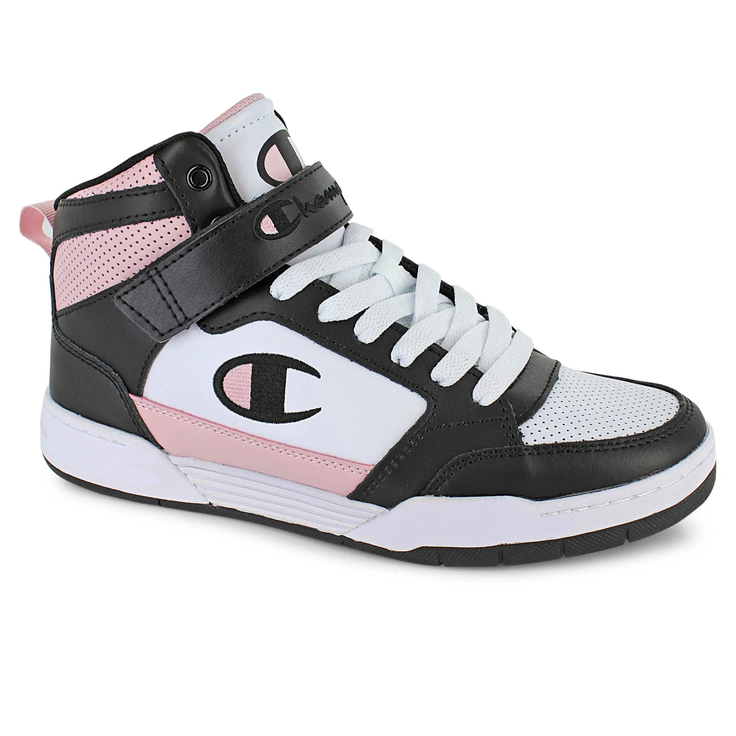 WRAP-AROUND COMFORT WITH CLASSIC CHAMPION STYLE. Old school style with modern touches. The ARENA POWER HI high-top sneakers are detailed with a velcro strap at the ankle for a secure fit, and perforated design for a nostalgic feel.ÿThe outsole and rubber bottom sole provides easy walking. A removable blended foam and rubber insole offersÿ support and comfort.