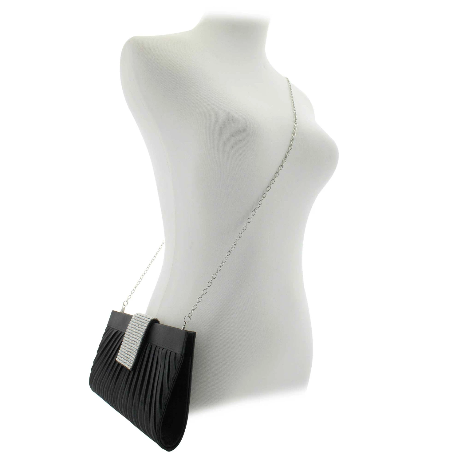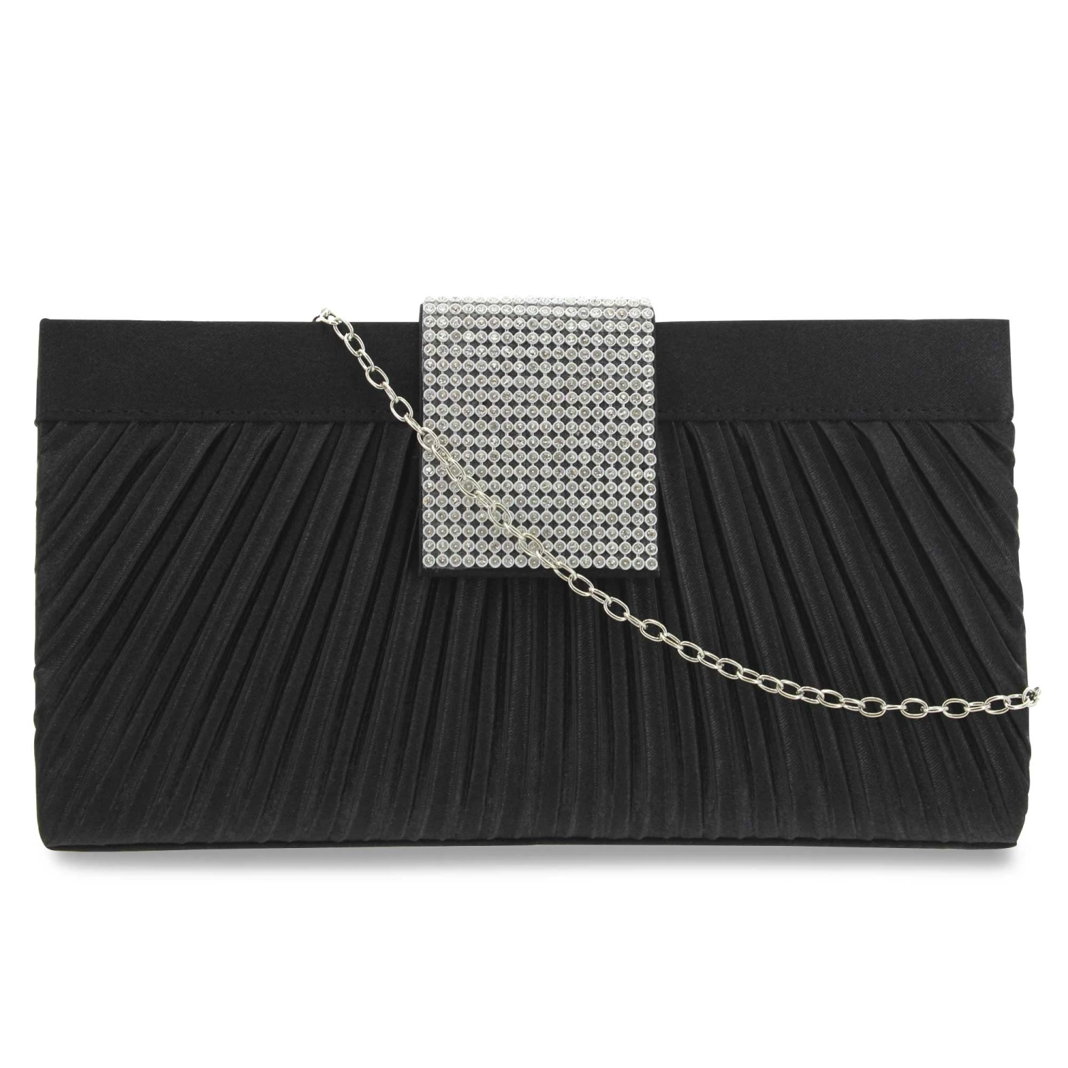 Add some extra razzle dazzle to your evening attire when you add this elegant clutch by Chelsea Moreland into the mix. It features an attractive pleated design that is accented by a faux-diamond embellished front flap closure. Keep your personal effects close at hand with this stylish fashion accessory. Shop SHOE SHOW MEGA today.