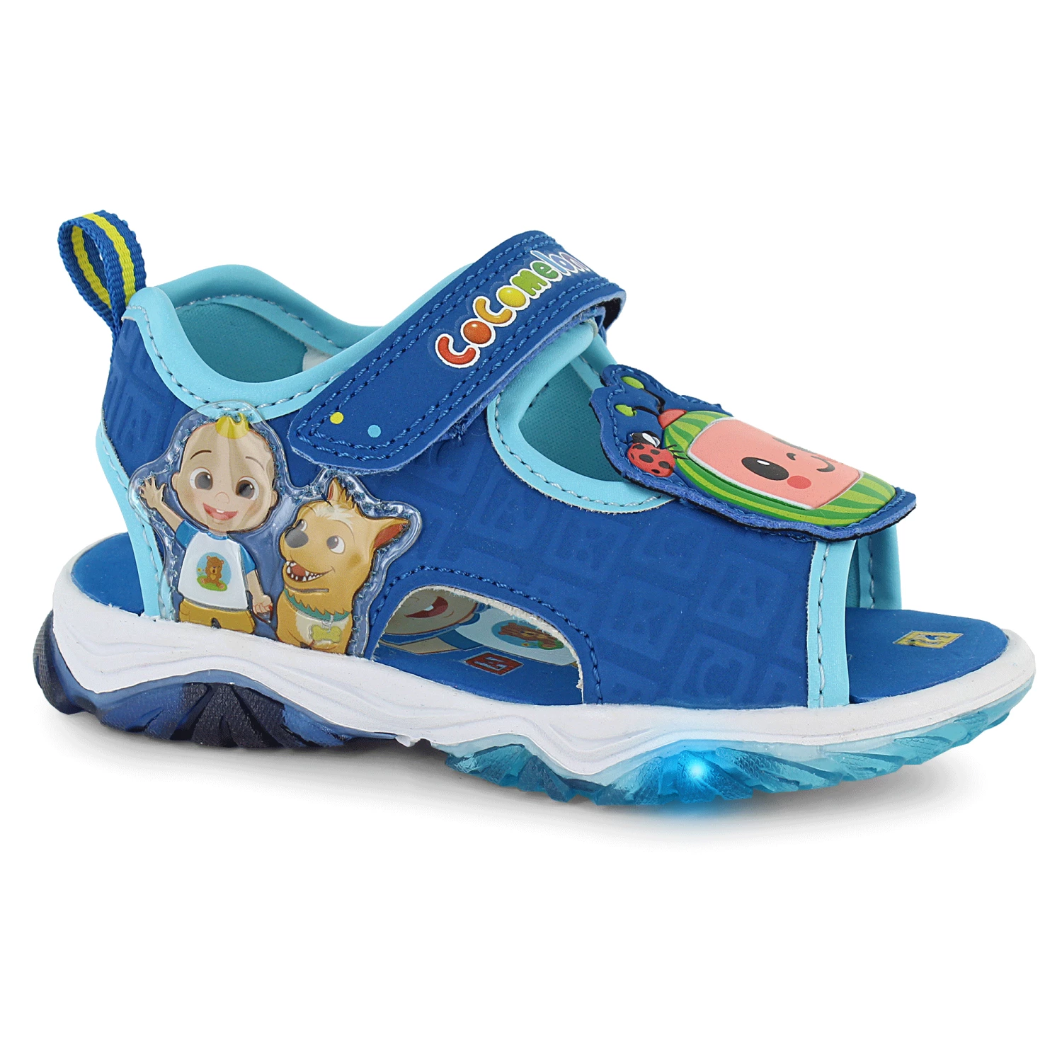 - colorful graphics on upper including CoComelon logo on strap as well as JJ and Bingo characters on lateral side