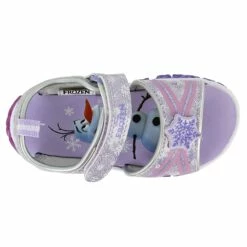 - Anna and Elsa character graphics on side and on footbed