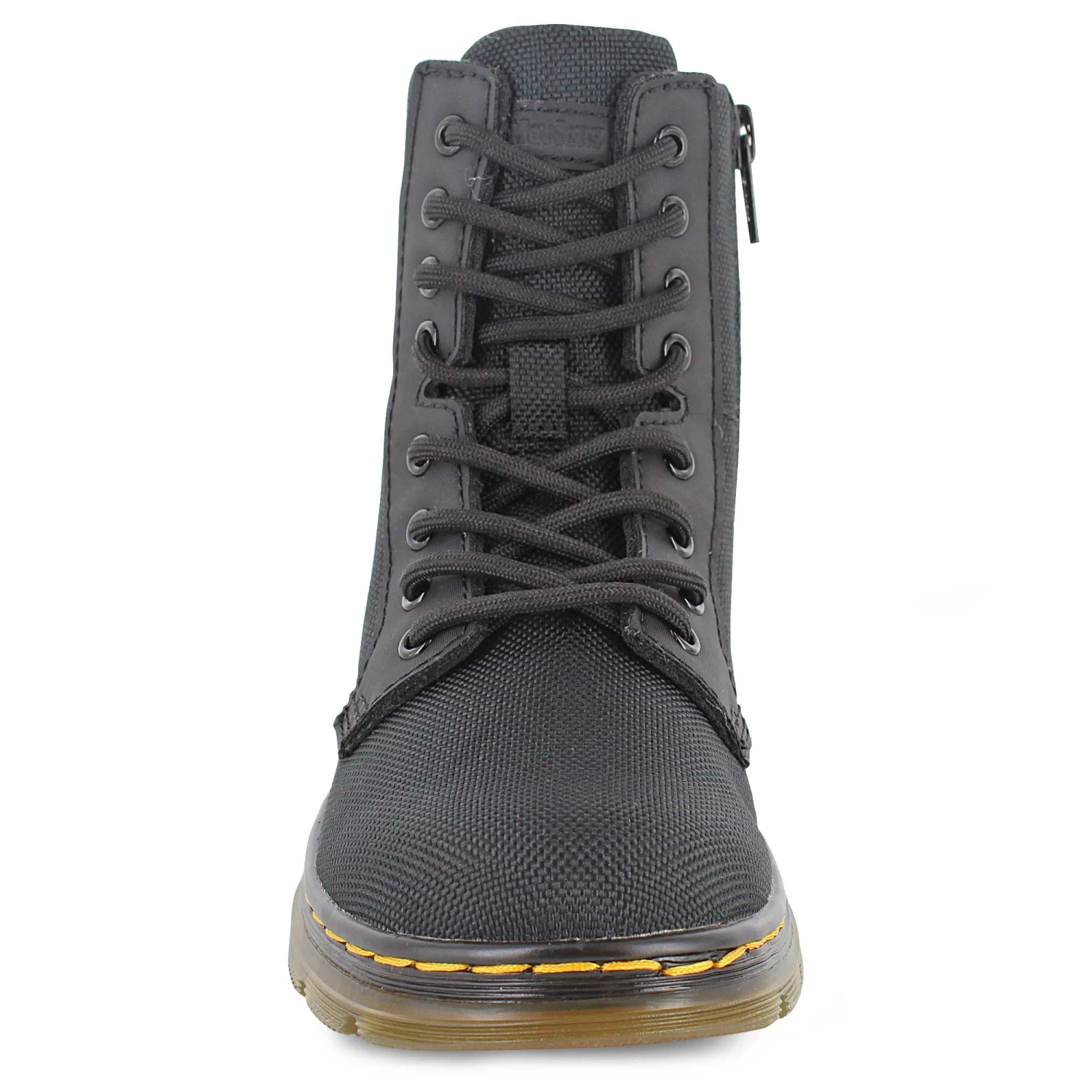 Get serious with rugged Dr. Martens Extra Tough Poly boots. As part of the Tract collection, these shoes are made for mud, movement and maybe a little mayhem. The water-repellent finish helps keep your feet dryer as you work and explore. The combat style lace-up front gives these shoes an extra tough-look while ensuring a snug fit, but the side zipper means you can get in and out of these boots in a hurry.