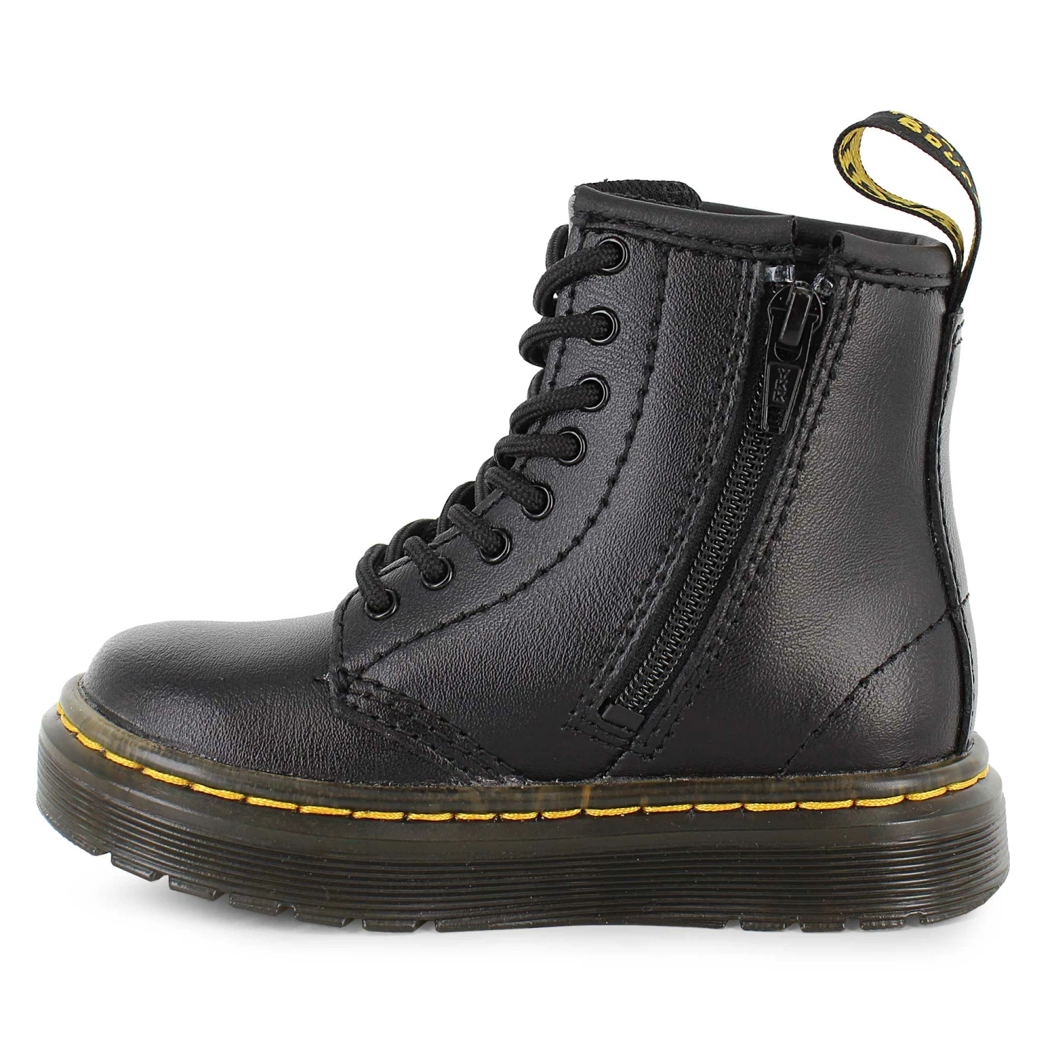Dress them in a classic that stands the rigors of time. These junior Dr. Martens have all the style of the adult boot with extra modern comfort and convenience. Lace them tight for fit, but throw them on an off with the side zipper in a flash. The soft leather upper looks great with any casual gear. Now available at SHOE SHOW MEGA.