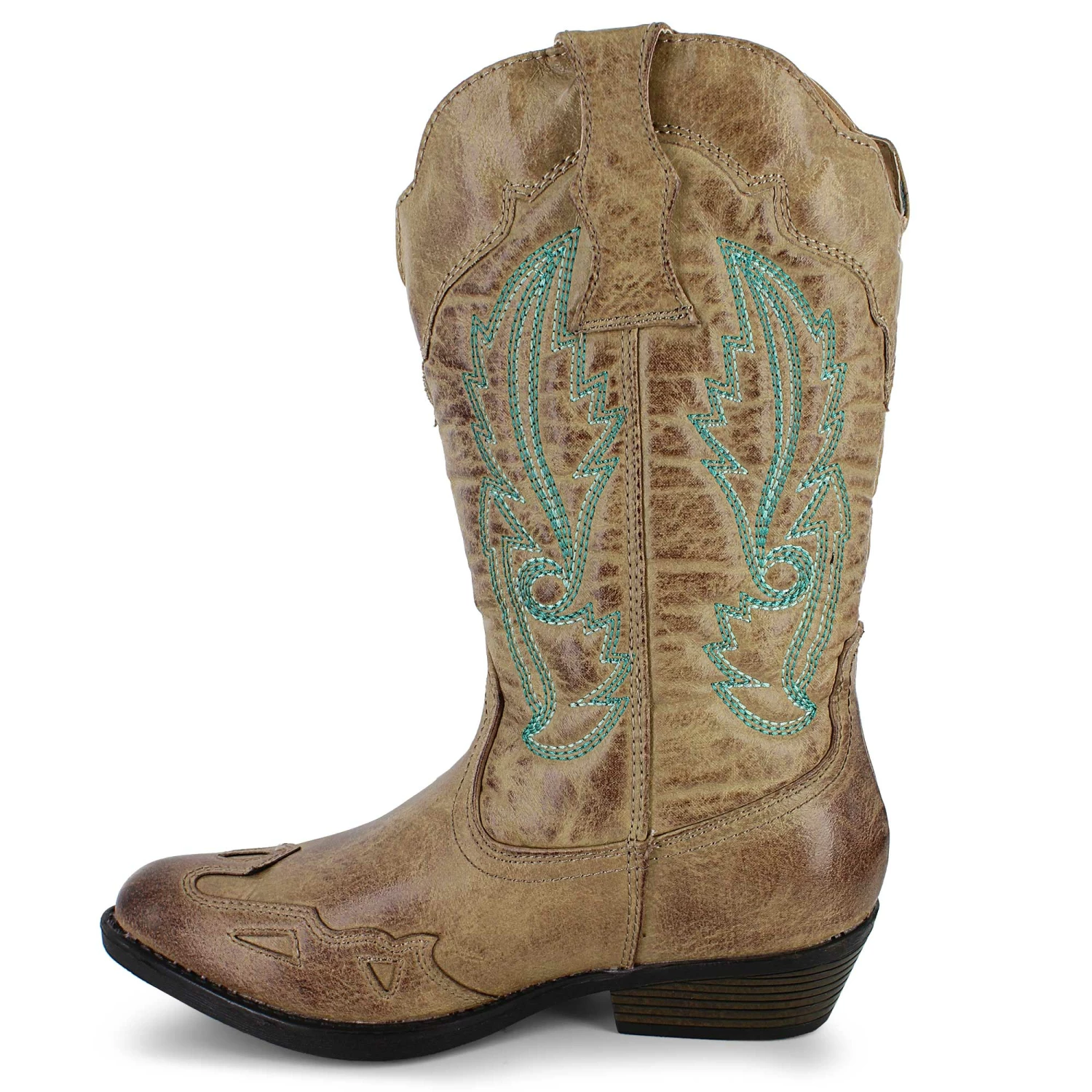 Get the best of the west with these cool Flex West boots. These boots have all the classic cowboy style, including embroidered stitching, pull-handles, pointed toe and heel. Wear them over jeans or leggings for an instant style boost wherever you go.