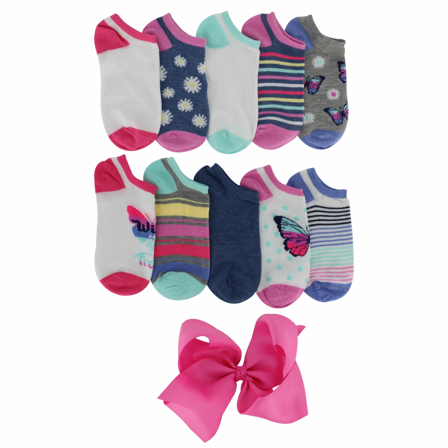 This multipack of no-show socks by Charlotte is a definite bonus pack. Not only is it a great deal with 10 pairs of socks for only $10, but it also includes a jumbo bow clip. This selection will have your little princess covered from head to toe, literally.
