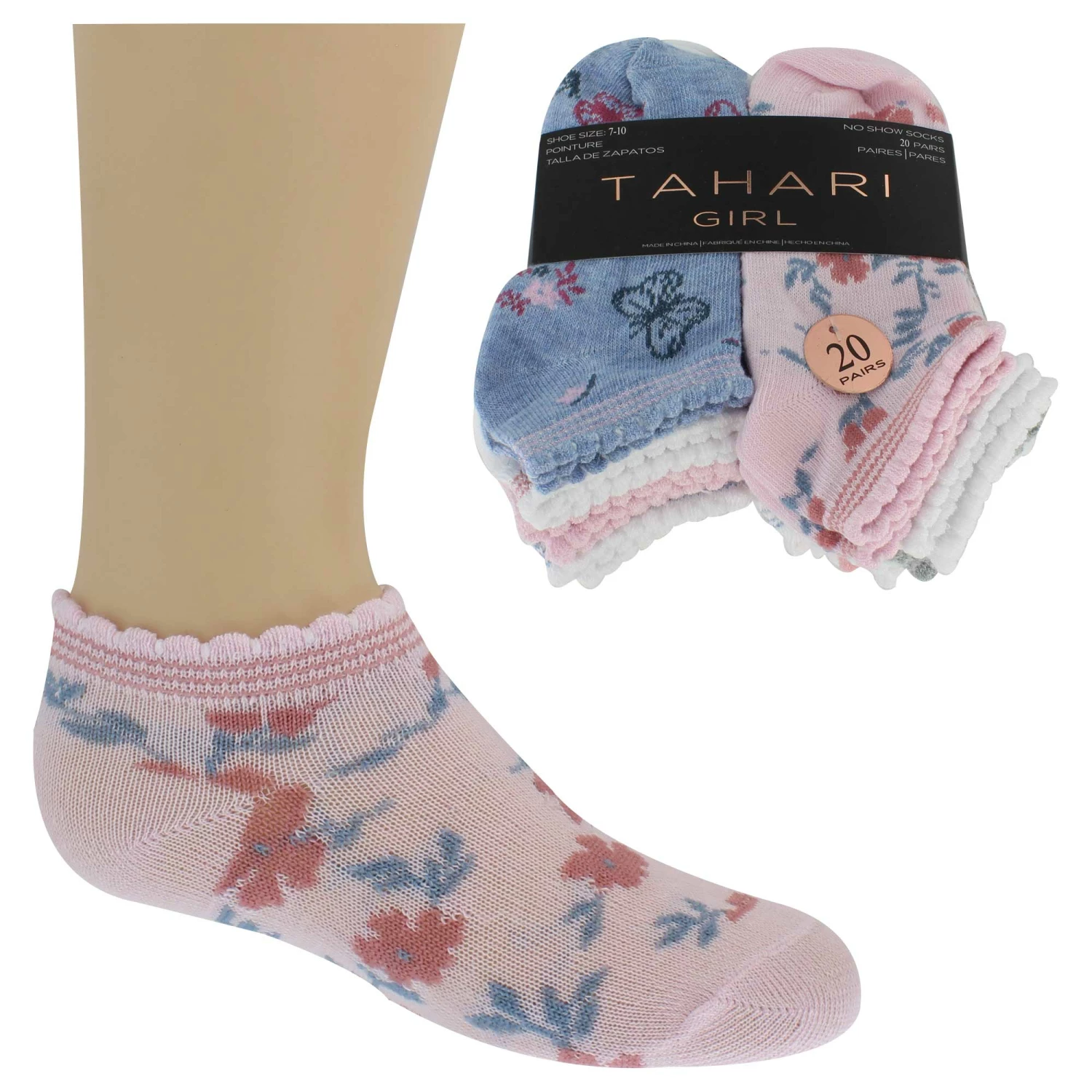 Girls’ Tahari Floral No-Show 20-Pair Pack