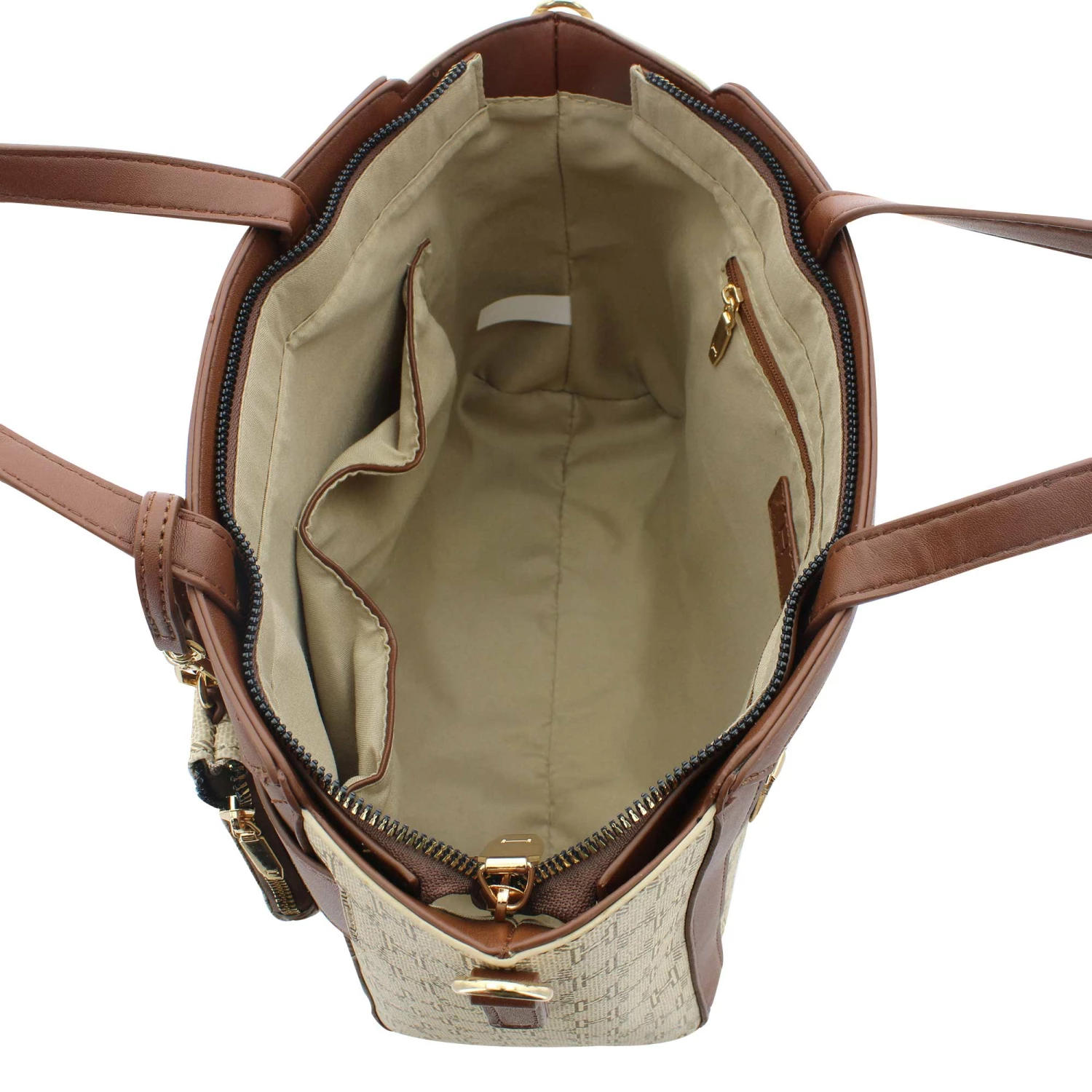 - fabric-lined interior with zip and slip pockets