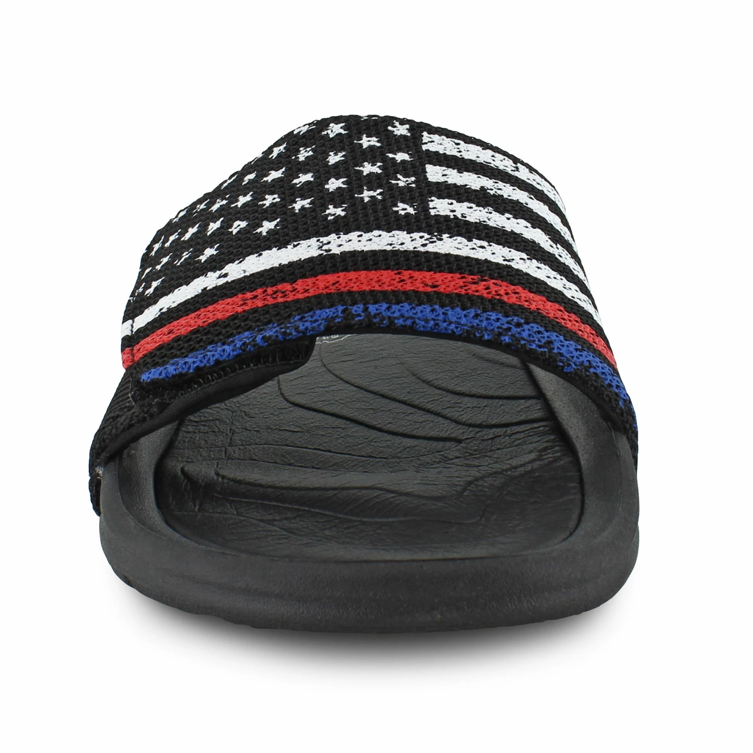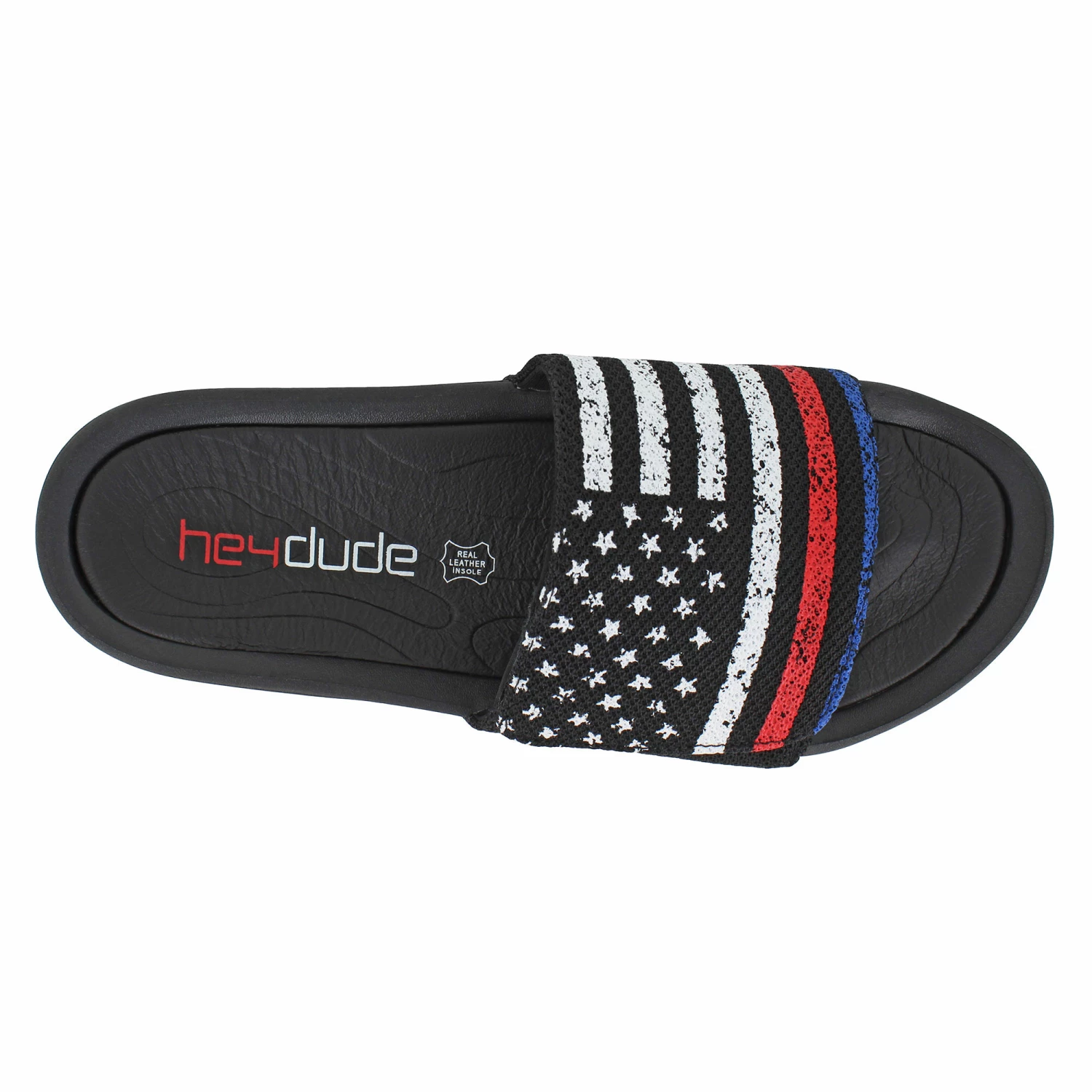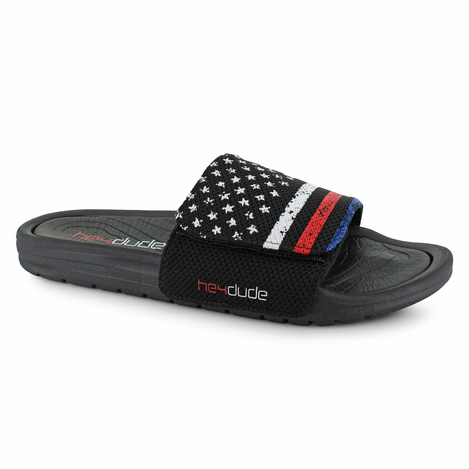 Embrace the heat this season with the Hey Dude Phoenix Sox. Crafted for warm-weather days with a Flex & Fold breathable stretch knit upper that’s adjustable with a velcro strap to ensure you get that perfect fit. Maximize your look with a handsome stars and stripes design for added flair while a memory foam comfort footbed keeps your feet comfy throughout the day. The Ultra-LIGHT outsole provides multi-surface traction to keep you going all season long.