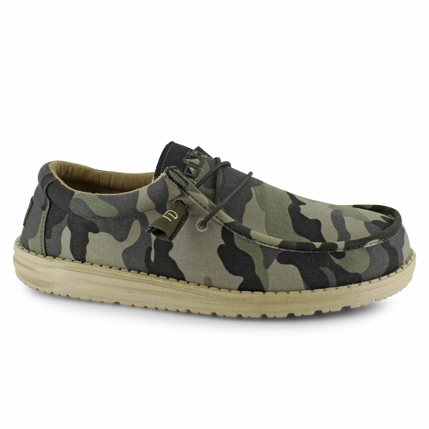 The Hey Dude Wally Canvas Camo is lightweight and crafted for year-round wear. Built for versatile comfort and style, this moc-toe slip-on is crafted with a durable canvas upper. Featuring elastic bungee laces that allow for an easier on and off, making this shoe the perfect on-the-go casual shoe. With a padded collar and a soft fabric lining as well as a memory foam insole for extra support, the Wally caters to any and all lifestyles and occasions with cool casual comfort.