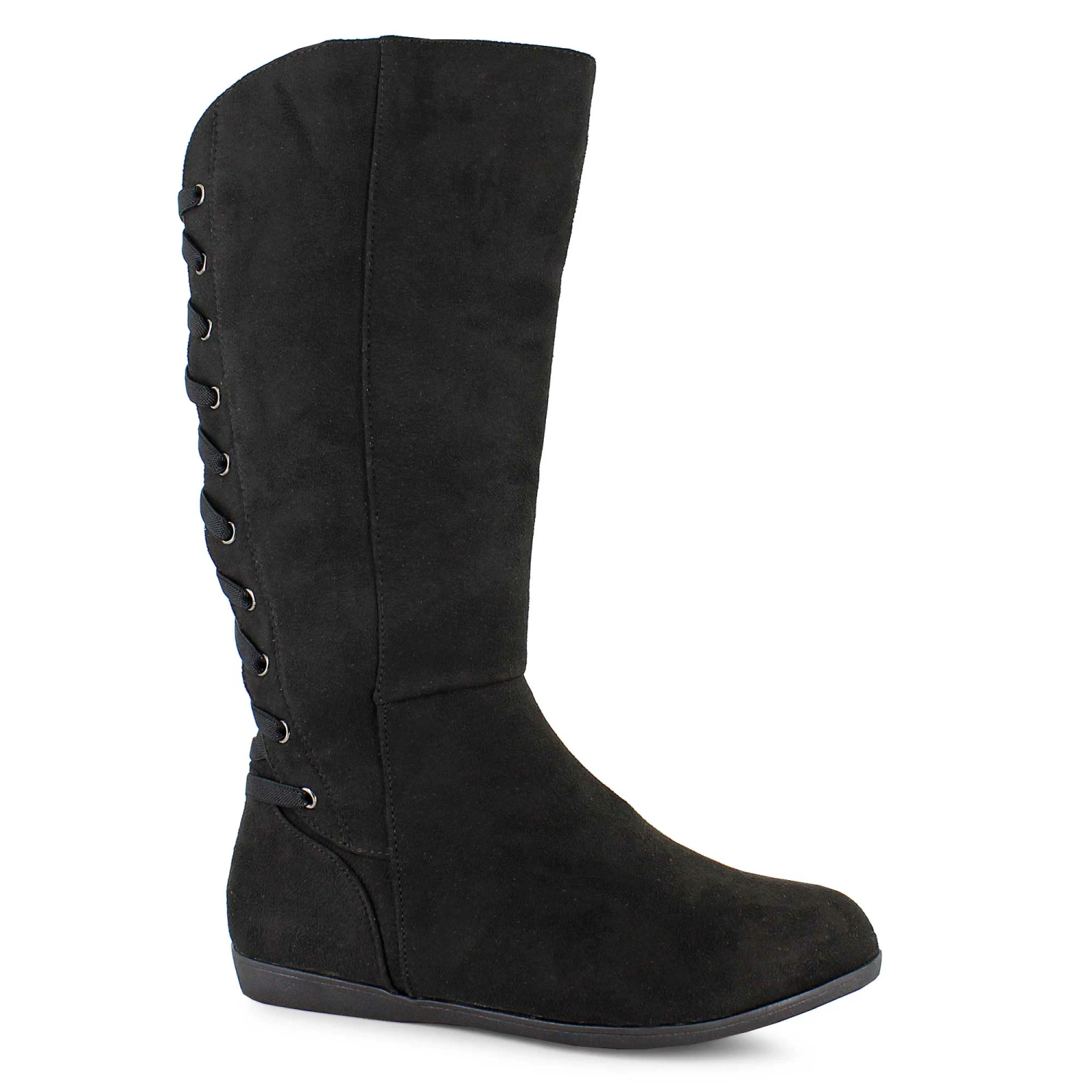 Begin the day with a fashionable head start in these calf boots by Hot Tomato. The stretchy elastic on the heel creates a custom fit as well as adding cute criss-cross style. A convenient side zipper makes them easy to put on and take off with no trouble.