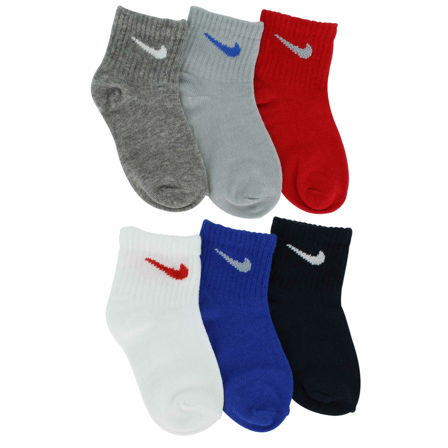 This multipack of Nike ankle socks is sure to make your little one content. It includes an assortment of solid colors that will make then kick up their heels. Stock up with the Nike brand that you know and love.