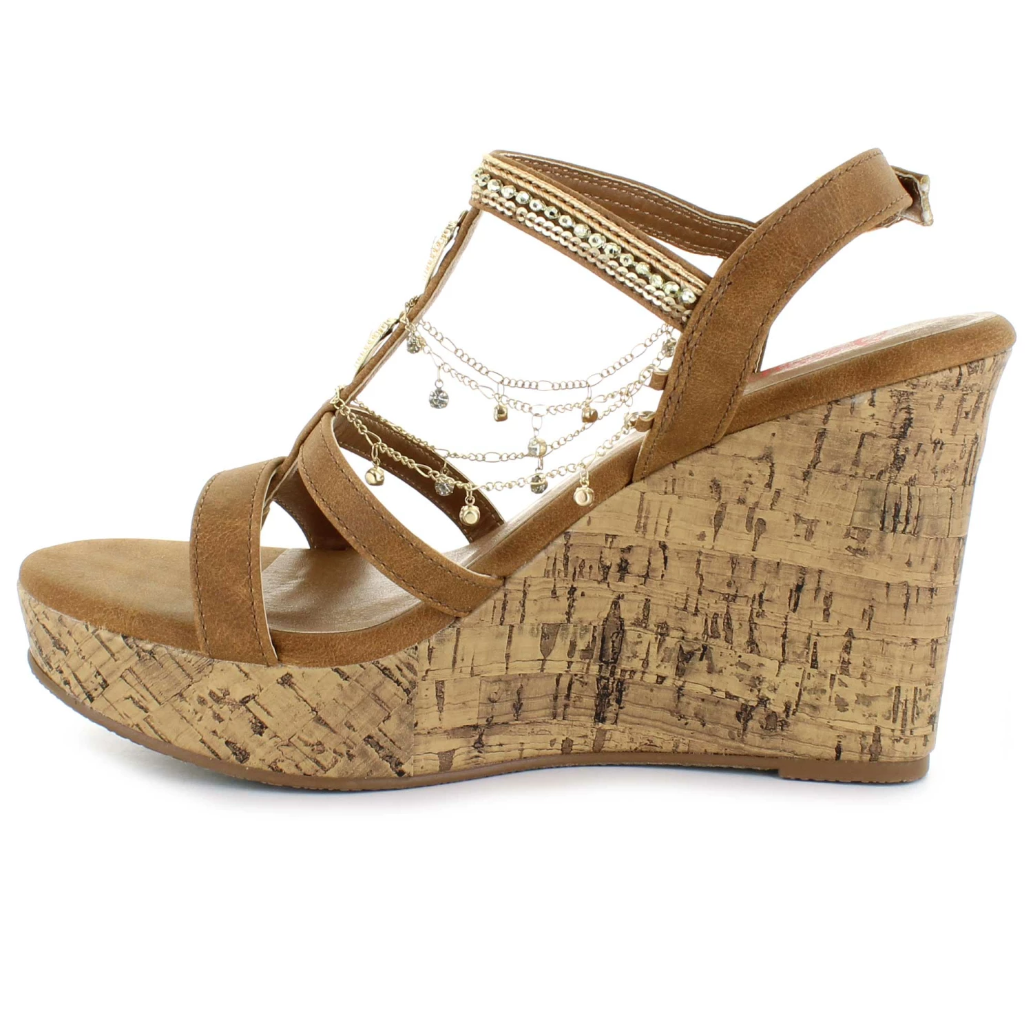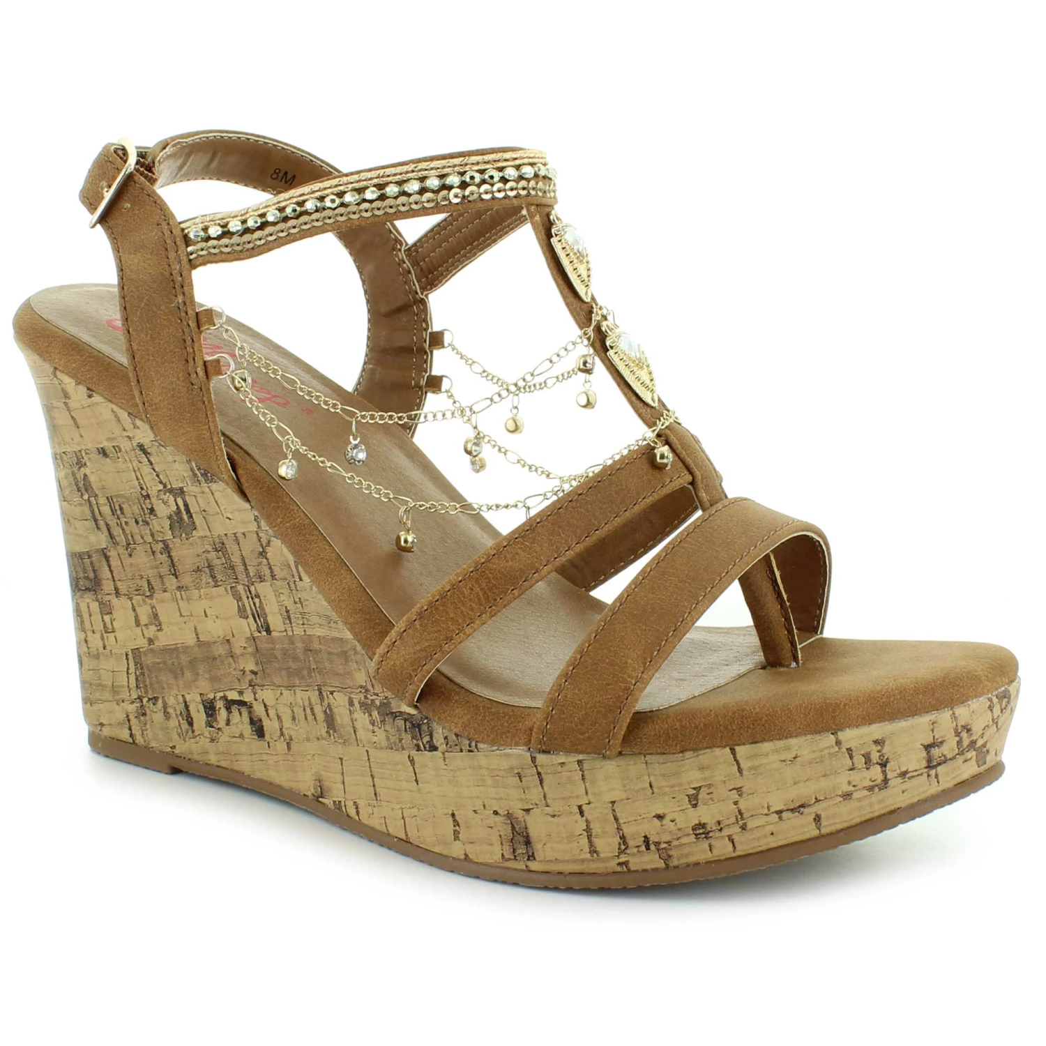 Slip your foot into this comfy wedge dress shoe by Jellypop. This style features chain and rhinestone details with a cushioned Comfort Fit insole. The side buckle closure will provide the perfect fit.