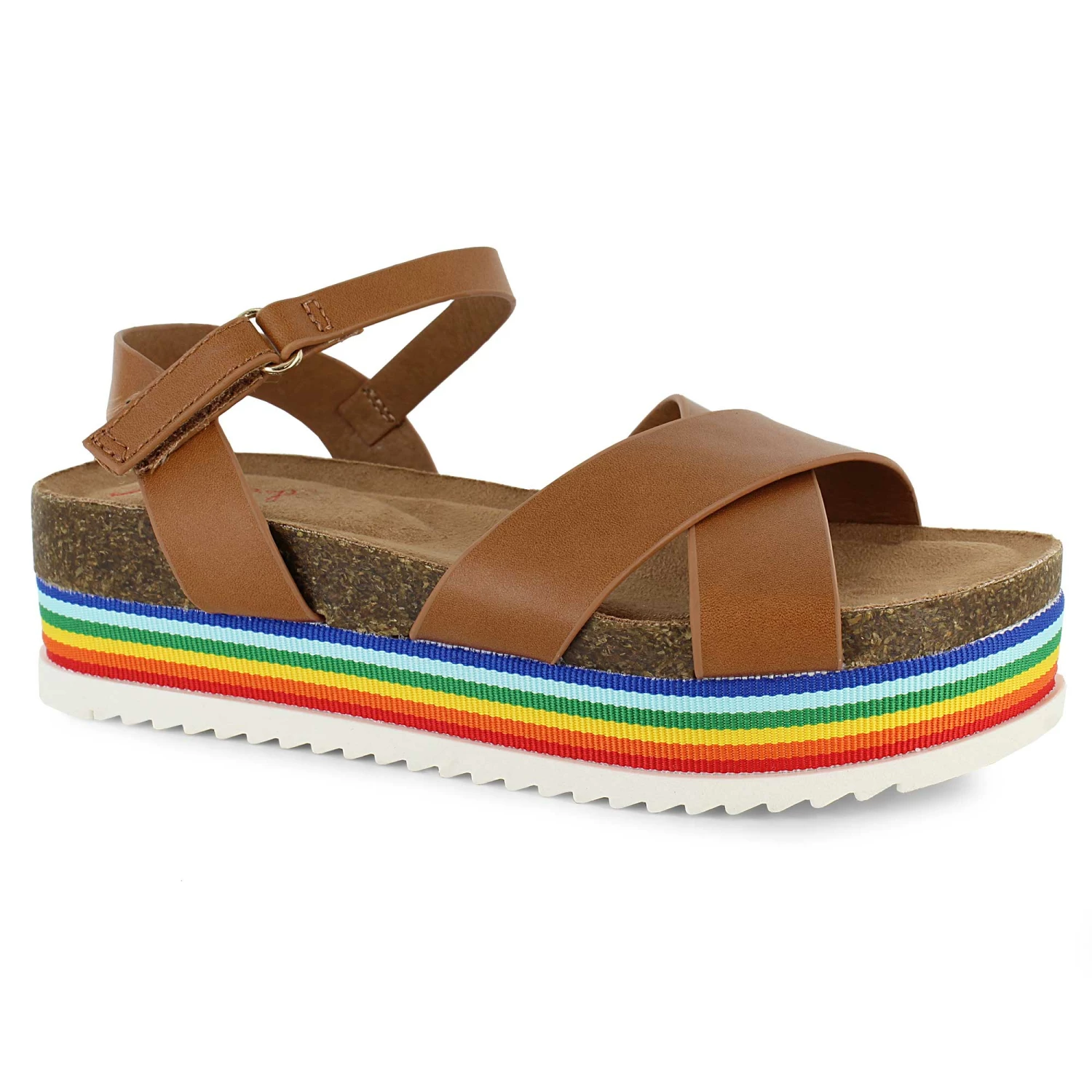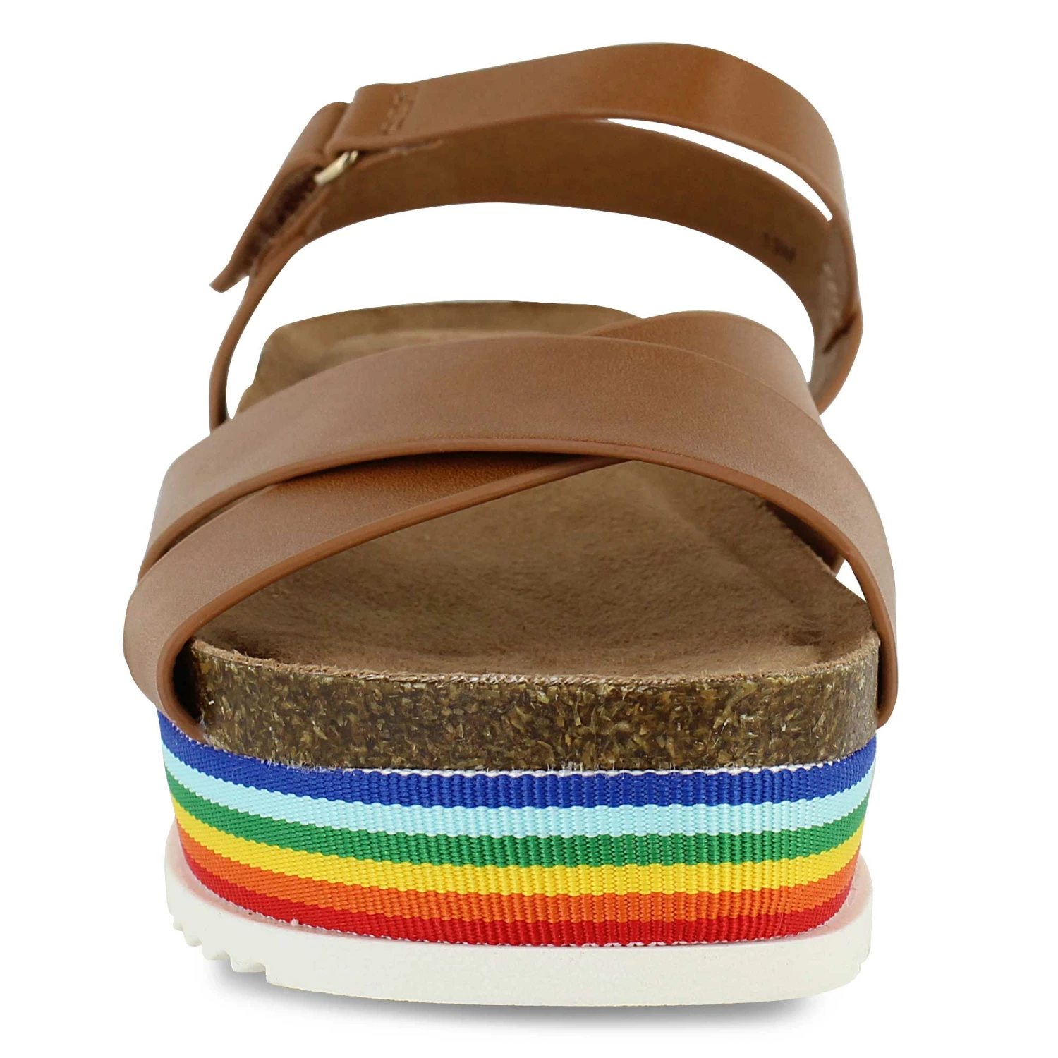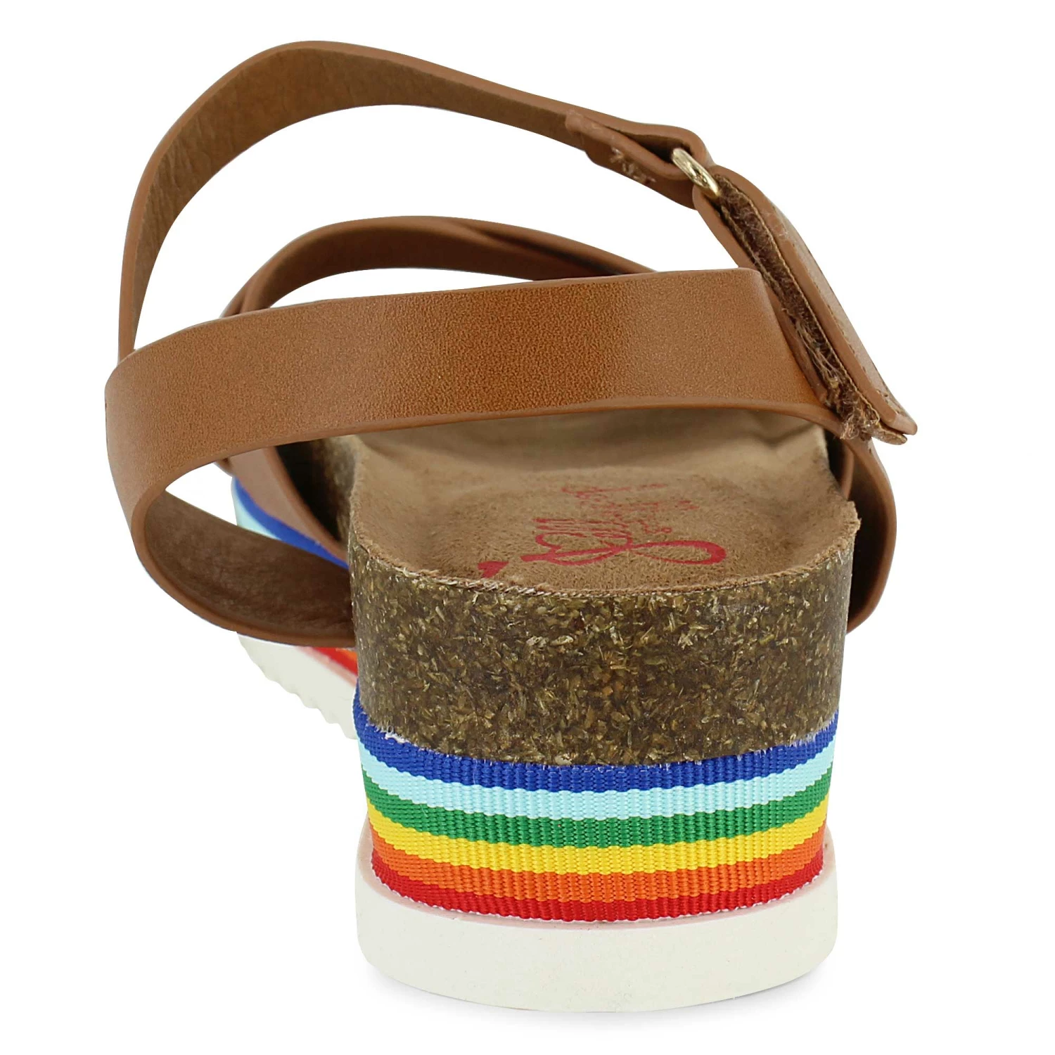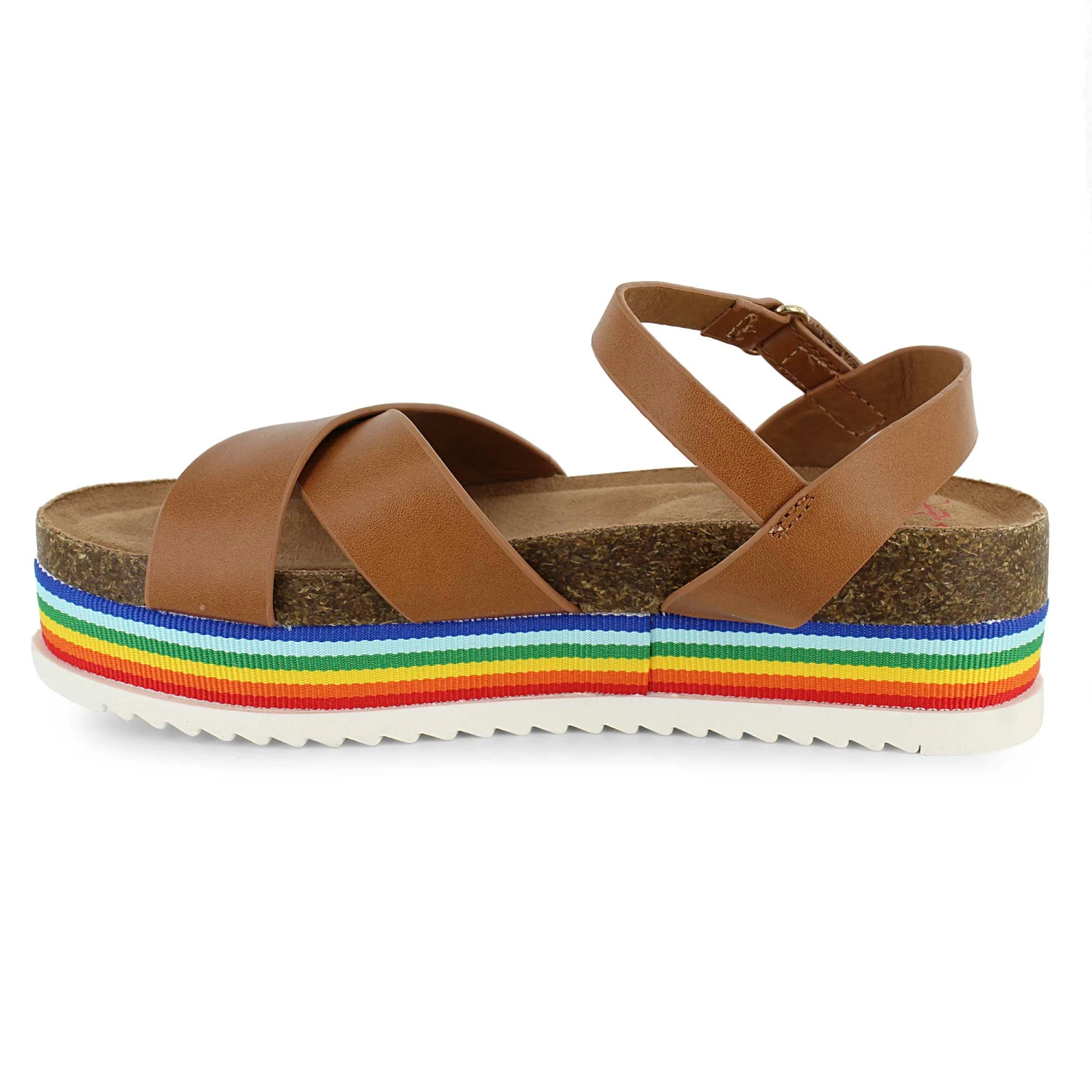 - faux-cork midsole and rainbow strip design