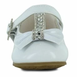 - bow accent and rhinestones decorate upper