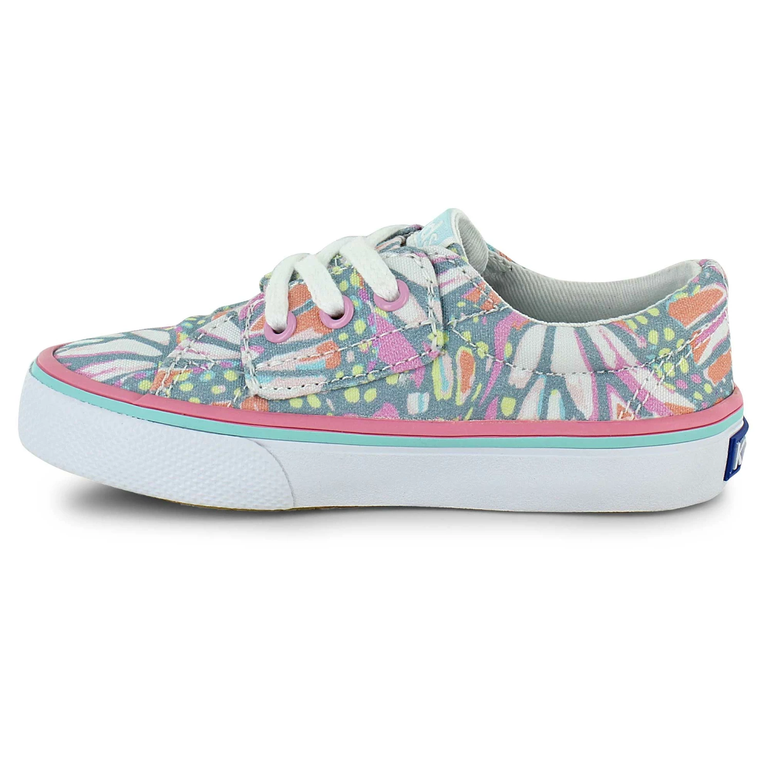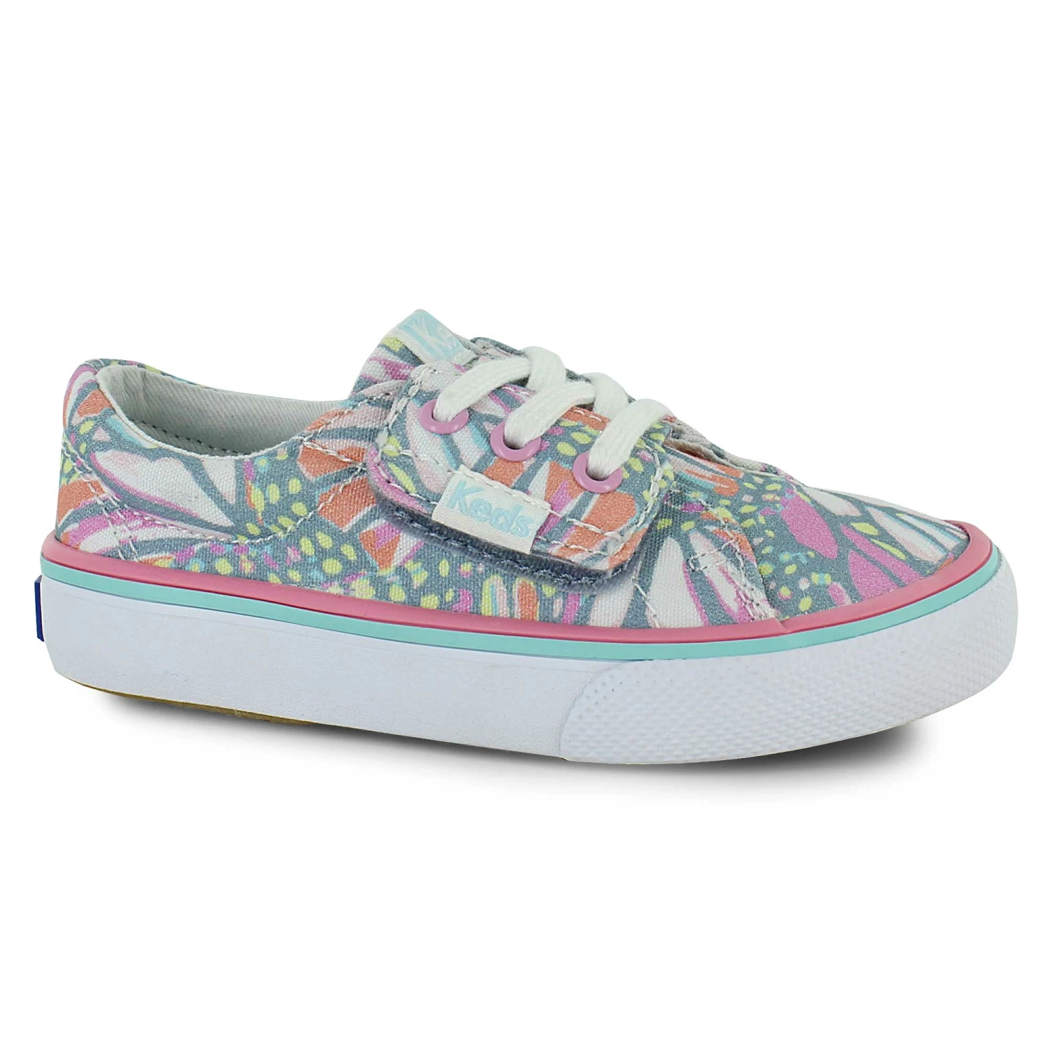 Bring comfortable classic style to their day with these playful Keds shoes. Colorful graphics pair well with summer dresses or casual jeans. A large strap closure with faux laces combines old-school style with modern convenience.