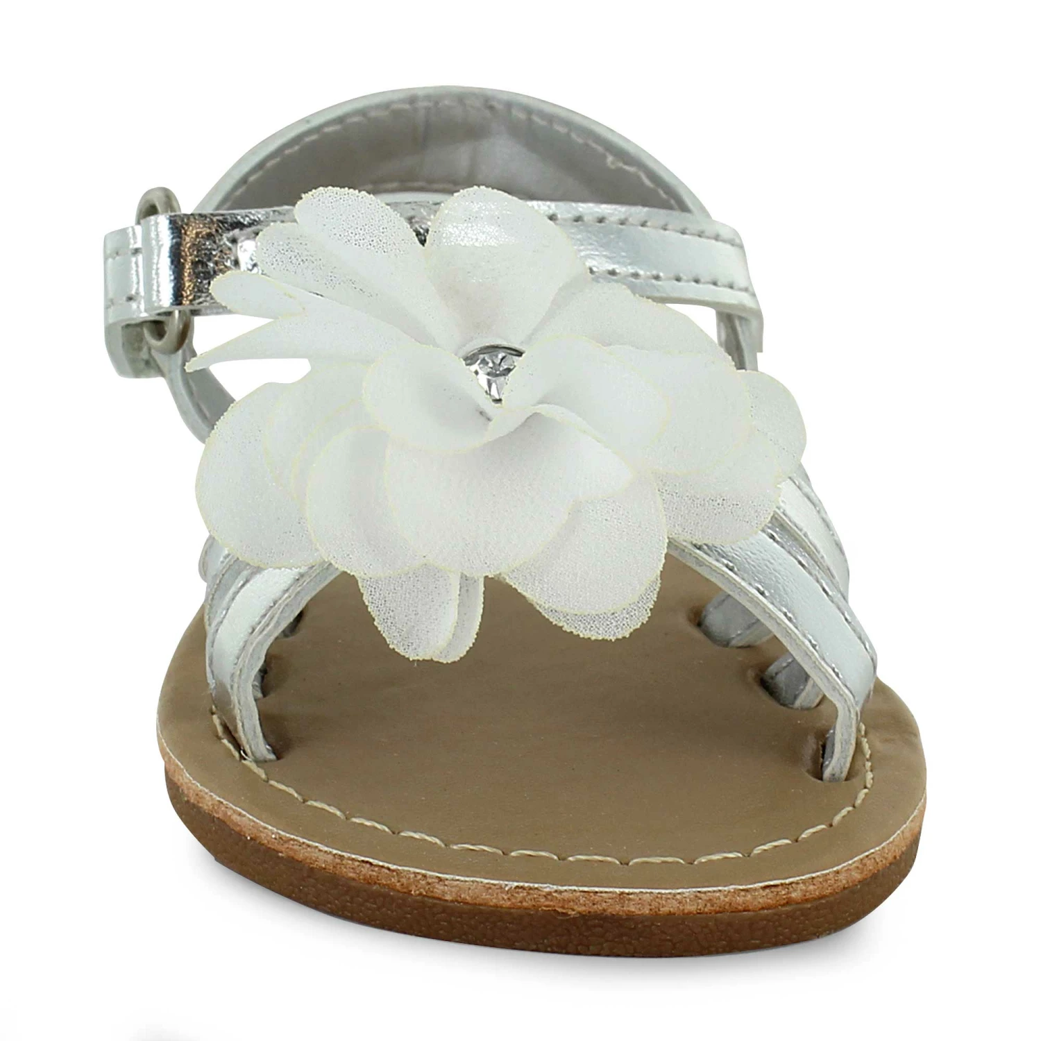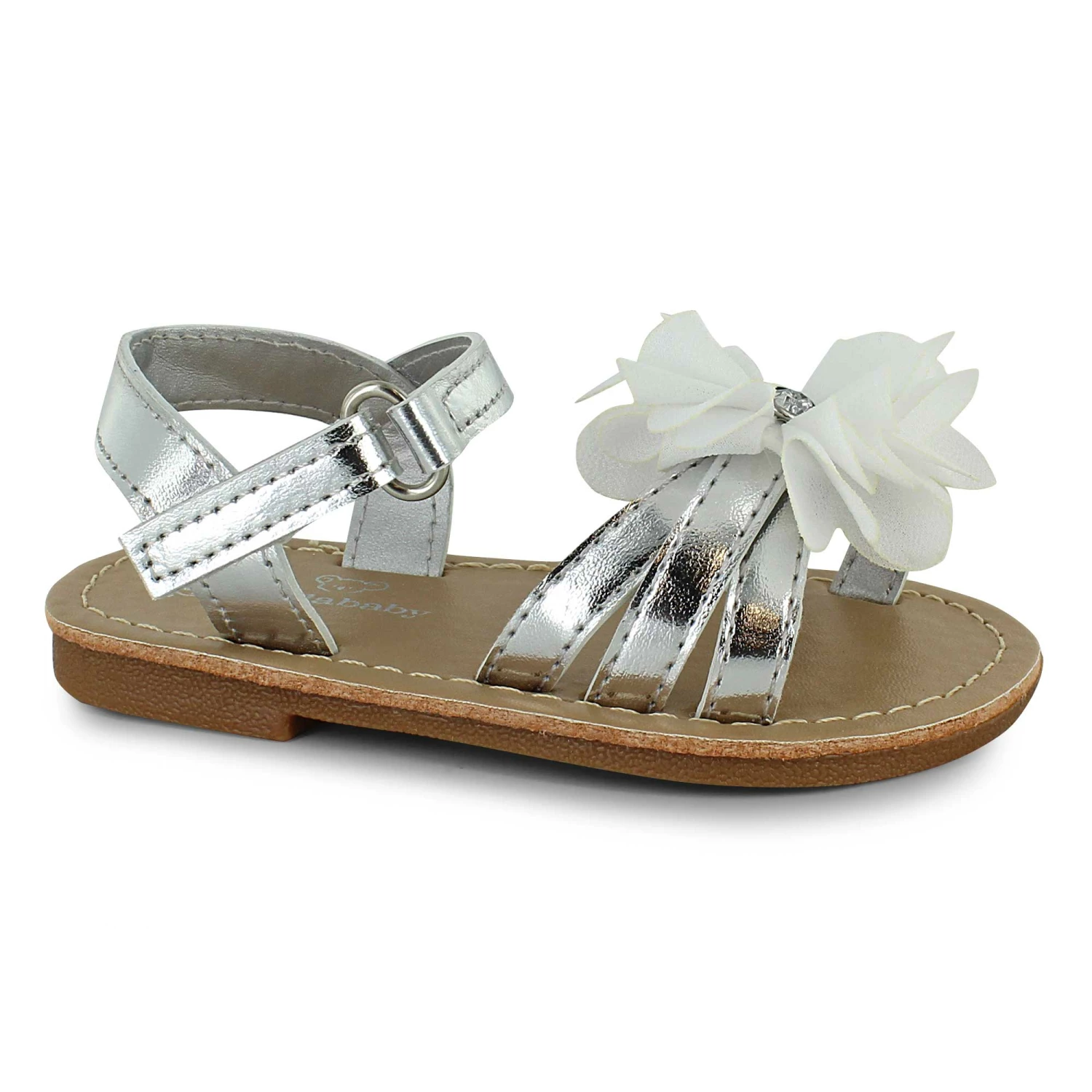 Keep them looking their best in these cute Koala Baby dress sandals. The fabric flower accent compliments dresses and pants alike, making them great for any summer trip out. A convenient strap closure provides a secure fit throughout the day.