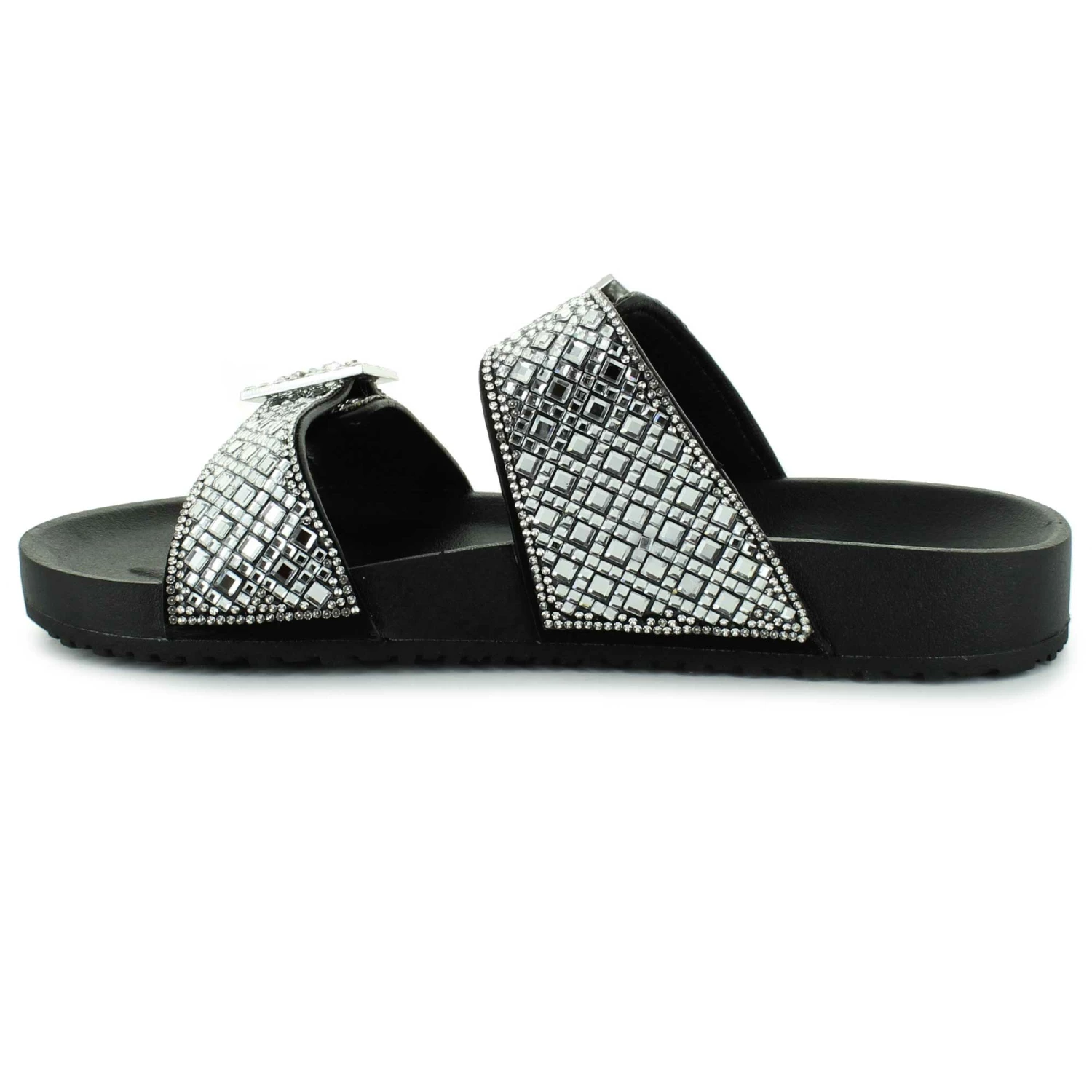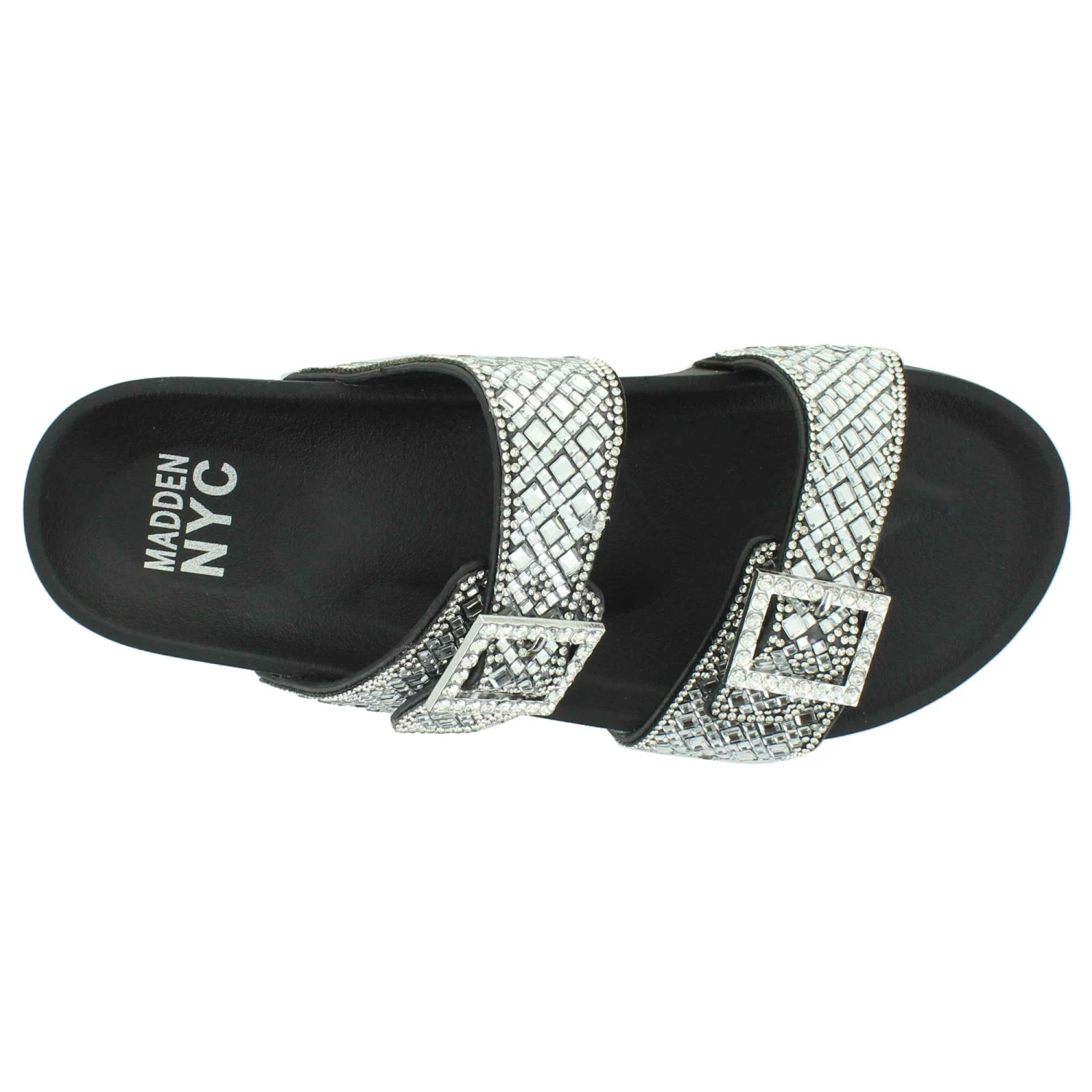 Feel like a star in the Madden NYC Electric. This sandal features a slip-on wear with dual buckles for a comfy fit. The rhinestone details will sparkle with each step.