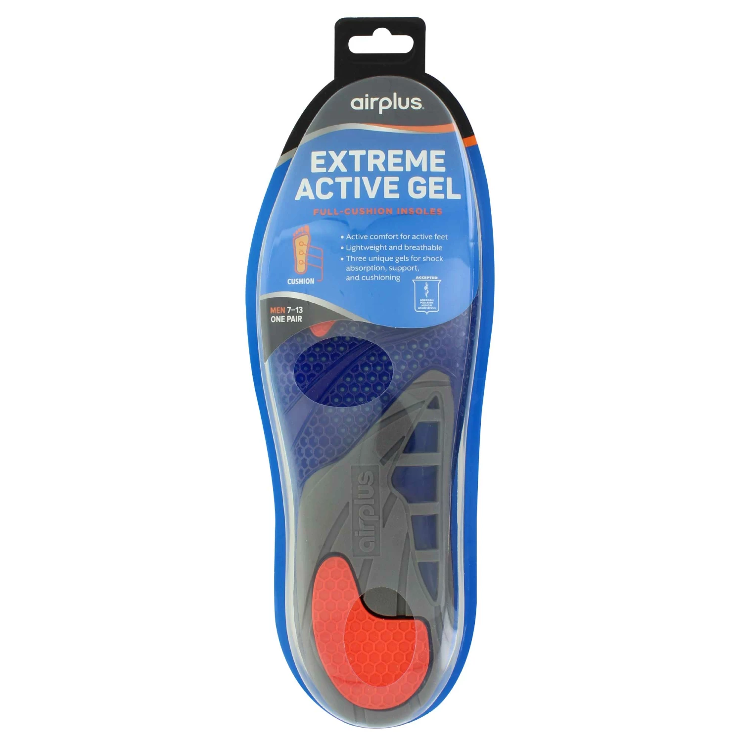 Enjoy extra comfort to each step with these amazing active gel insoles by airplus. These insoles are comprised of three different gels for shock absorption, support, and cushioning. Step out with relief when you step into this choice.