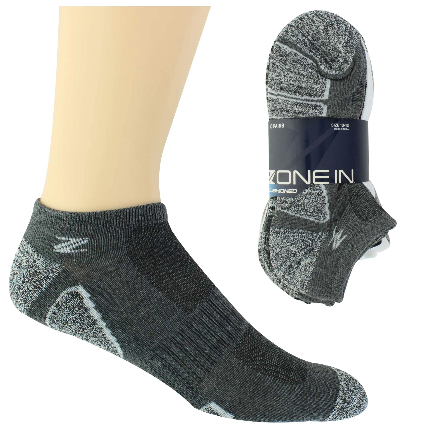 Stock up with this athletic selection of socks by Zone In and save yourself money at the same time. These assortment packs of socks come in versatile colors so you can pair them up with multiple outfit choices. Your feet will be covered with the breathable knit and cushioned sole with added moisture management to keep your feet dry.