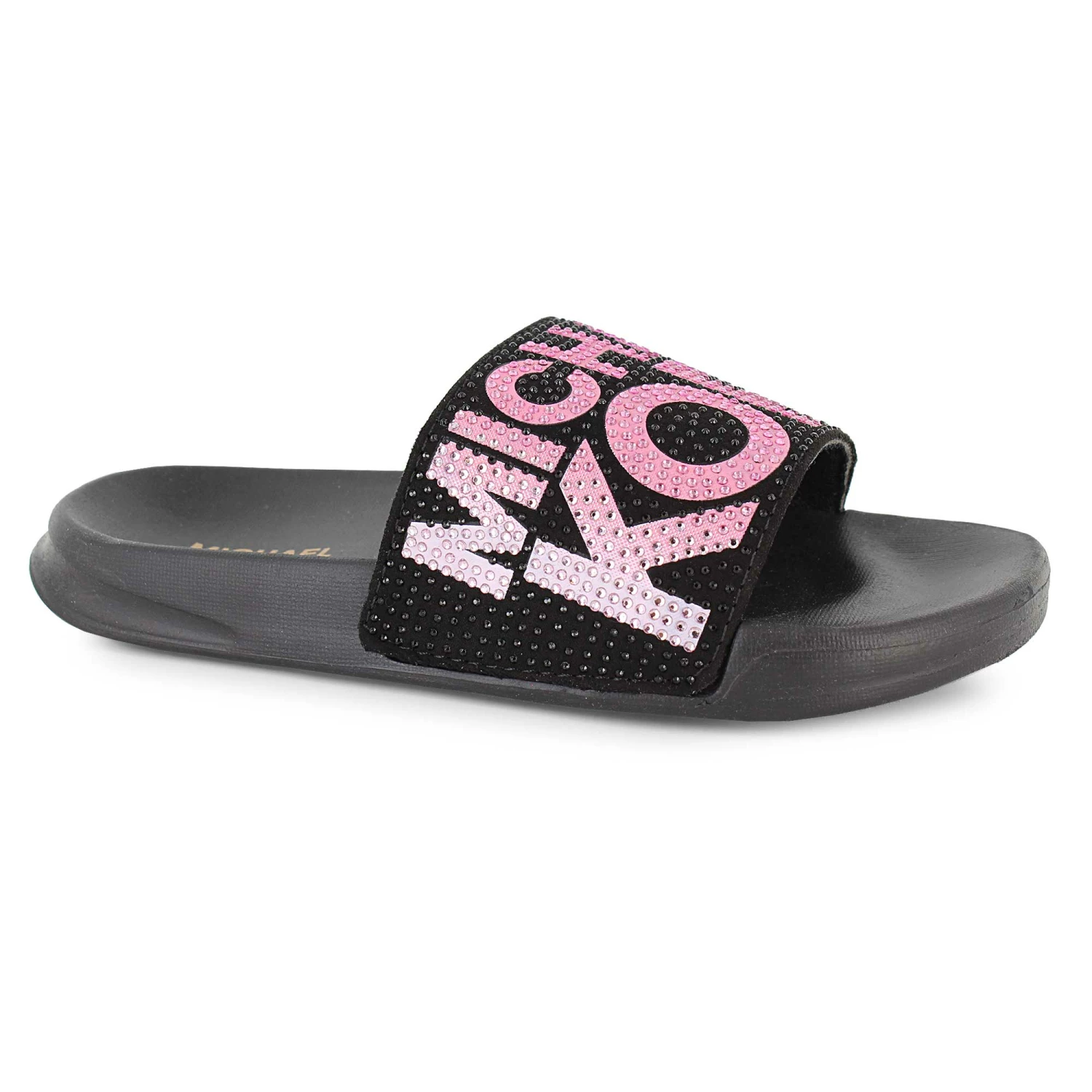 - Michael Kors logo in rhinestones across strap