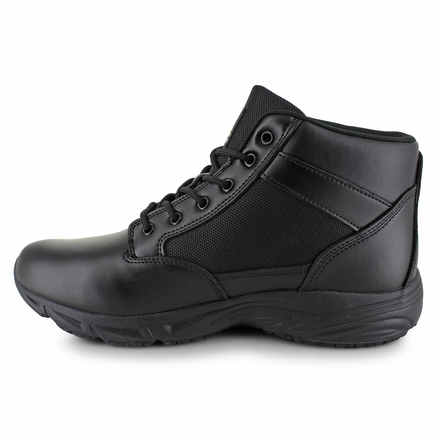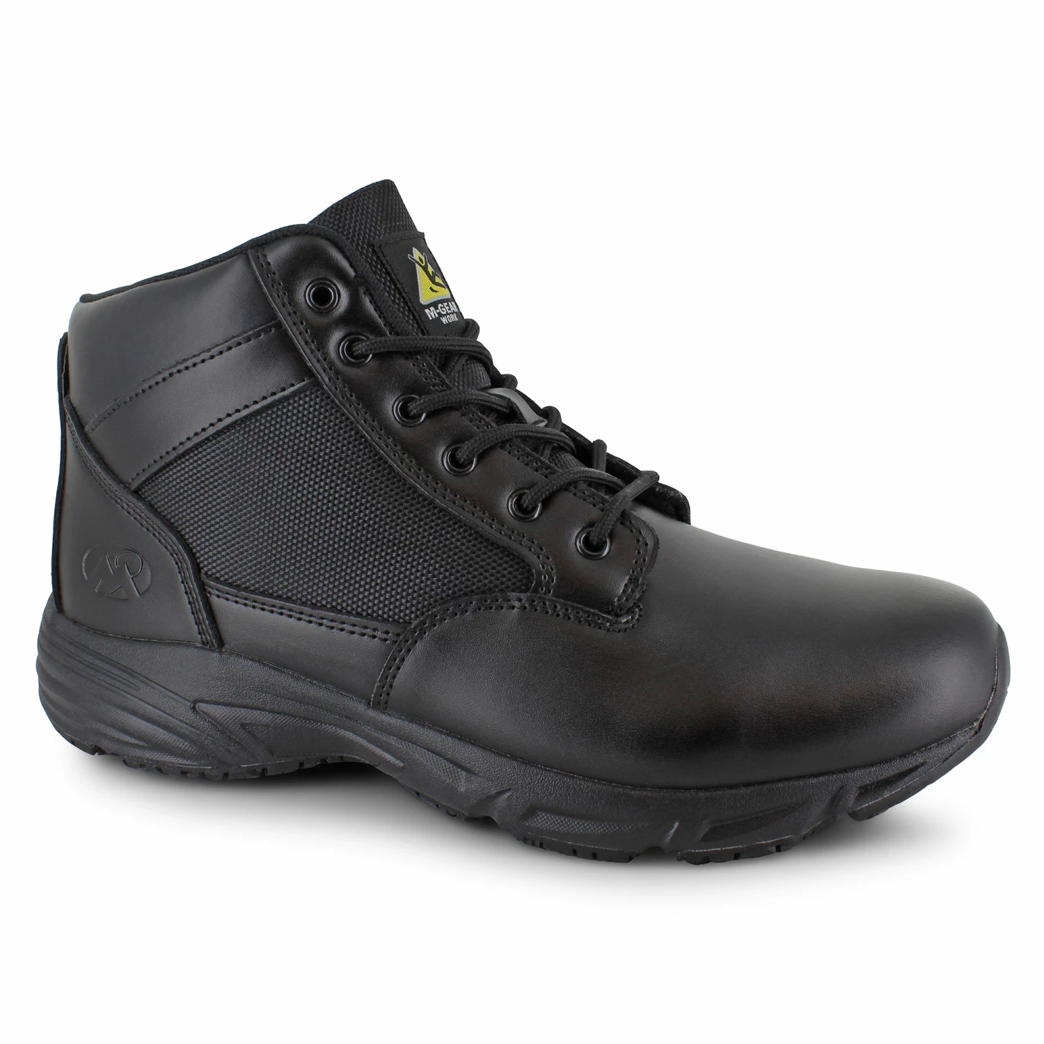 Be prepared for your next shift with the Mountain Gear Boulder. Crafted with a genuine leather upper, this handsome ankle boot features an overall lightweight design and stylish textile panels for added contrast. The lace-up front closure secures your feet in place while a padded collar and tongue offer additional ankle support to get you through the day. With a Comfort Insole providing all-day comfort and a durable slip-resistant rubber outsole ensuring support and traction where you need it most, the Boulder is perfect for hard workers.