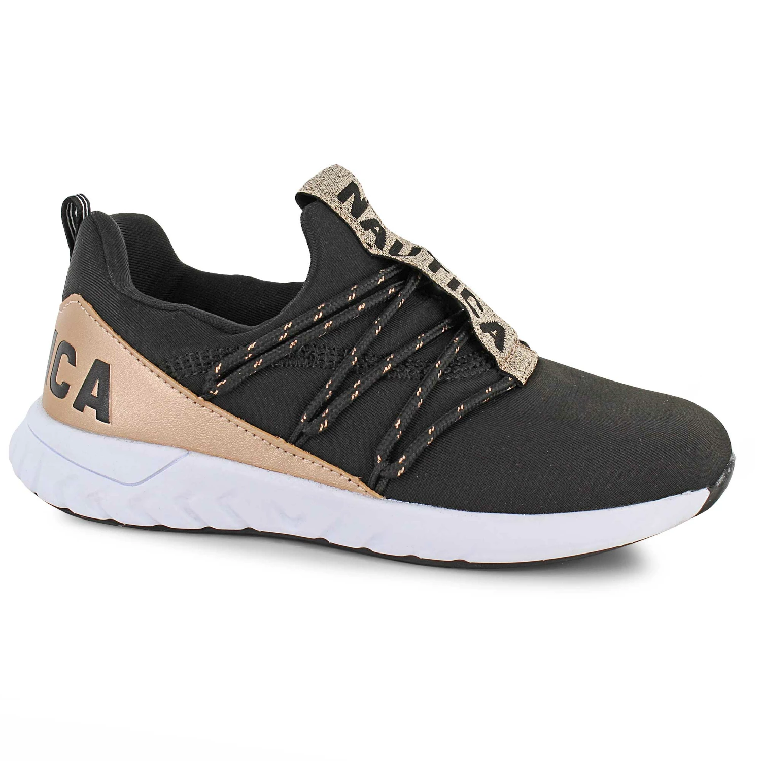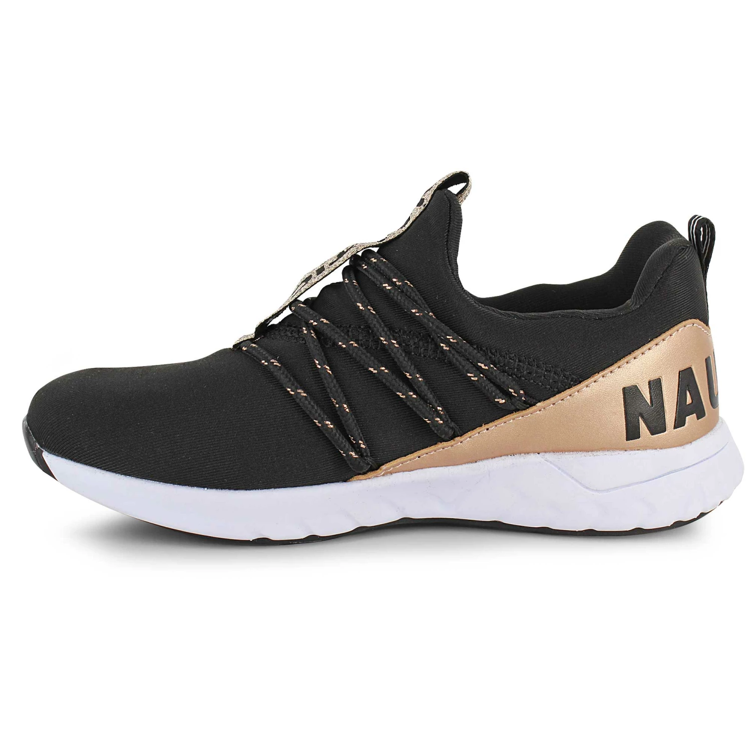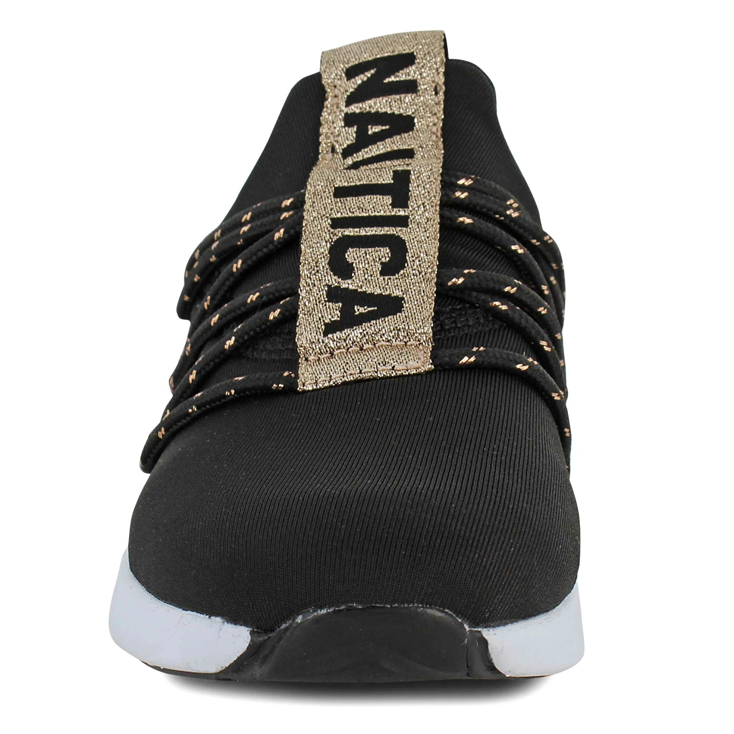 Rise to the heights of casual fashion with these sporty Nautica shoes. The slip-on construction is perfect for kids hurrying out the door for school or a meetup with friends. Glittery accents and a metallic overlay add extra glam you’ll love to show off.