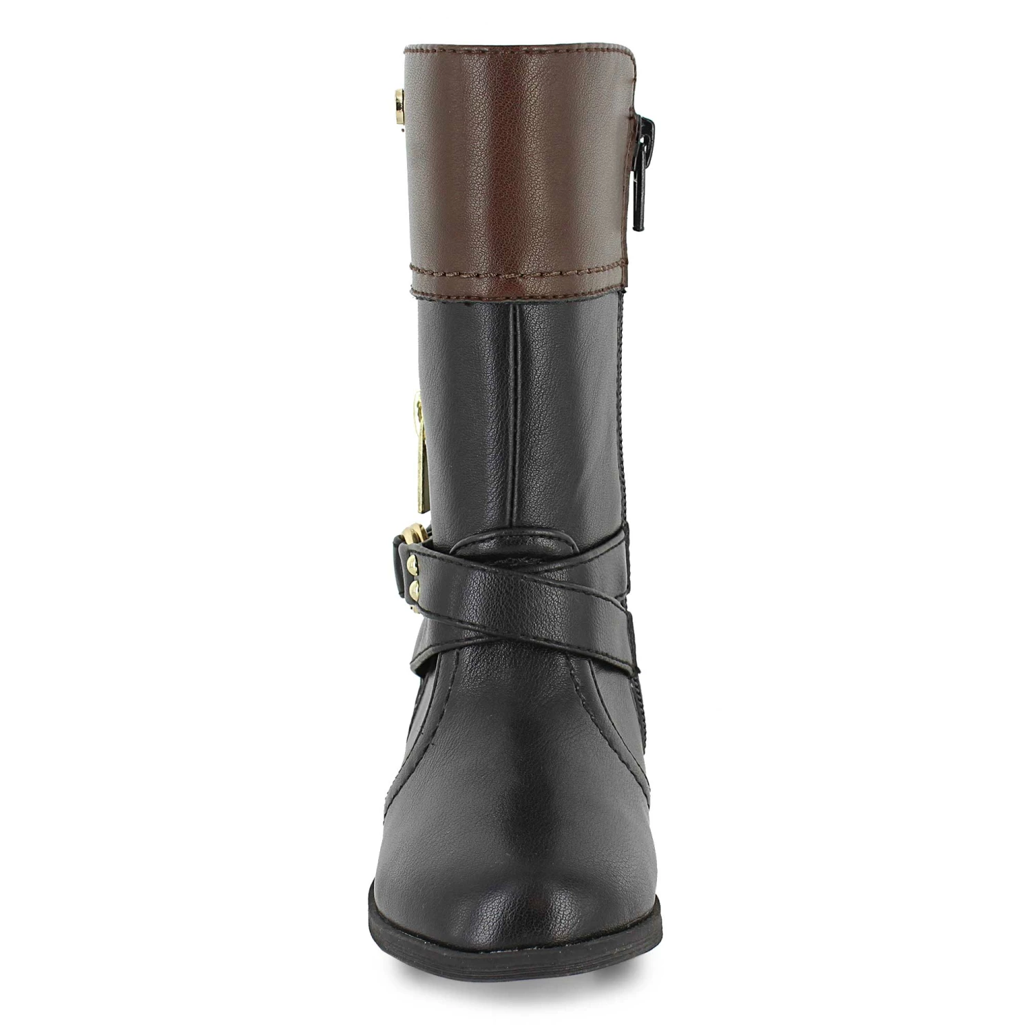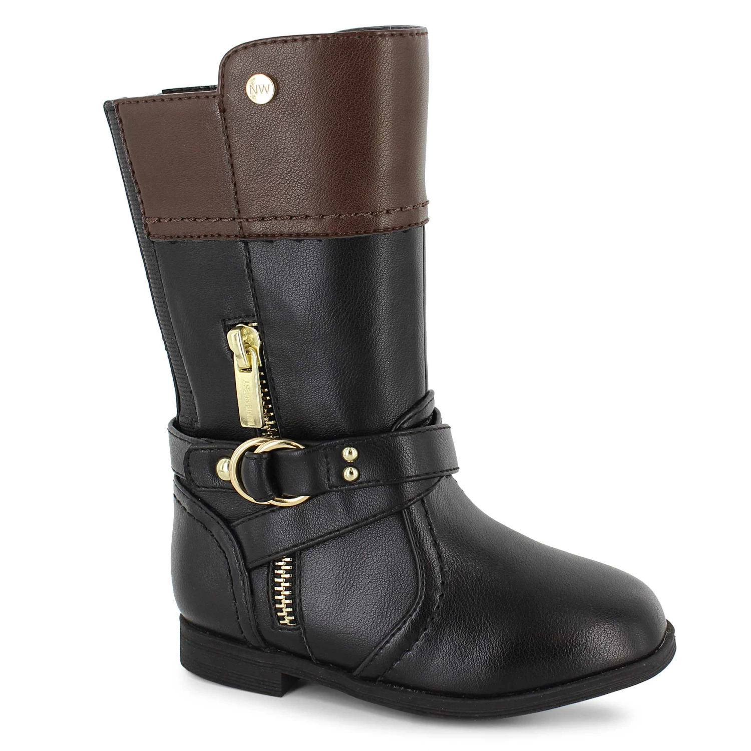 Dress their little feet in big style. These Nine West fashion riding boots feature decorative straps and zippers that raise any look up in sophistication. The convenient side zipper and elastic panels make them simple to put on and start moving. Pick them for big days out with the family when you want them to look their best.
