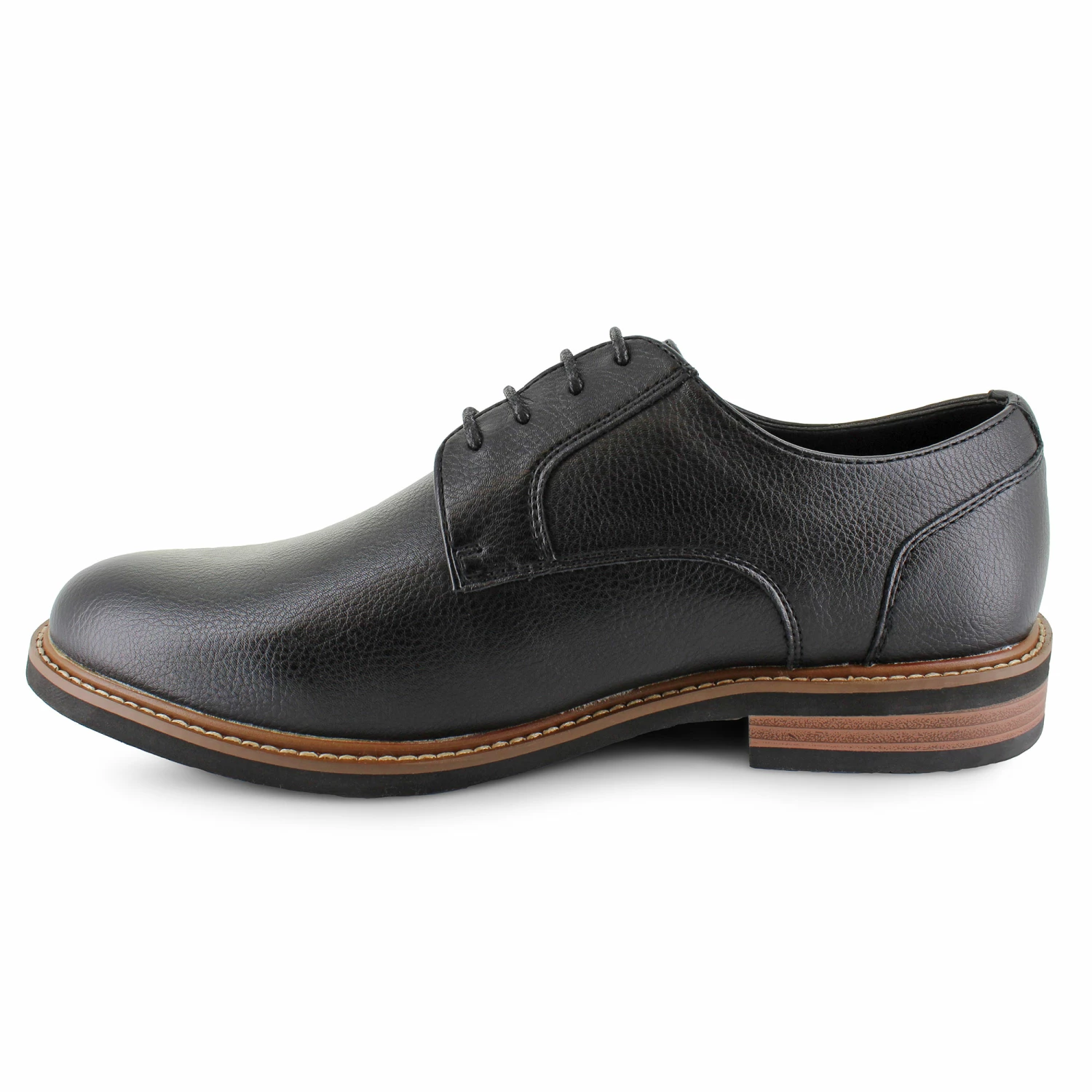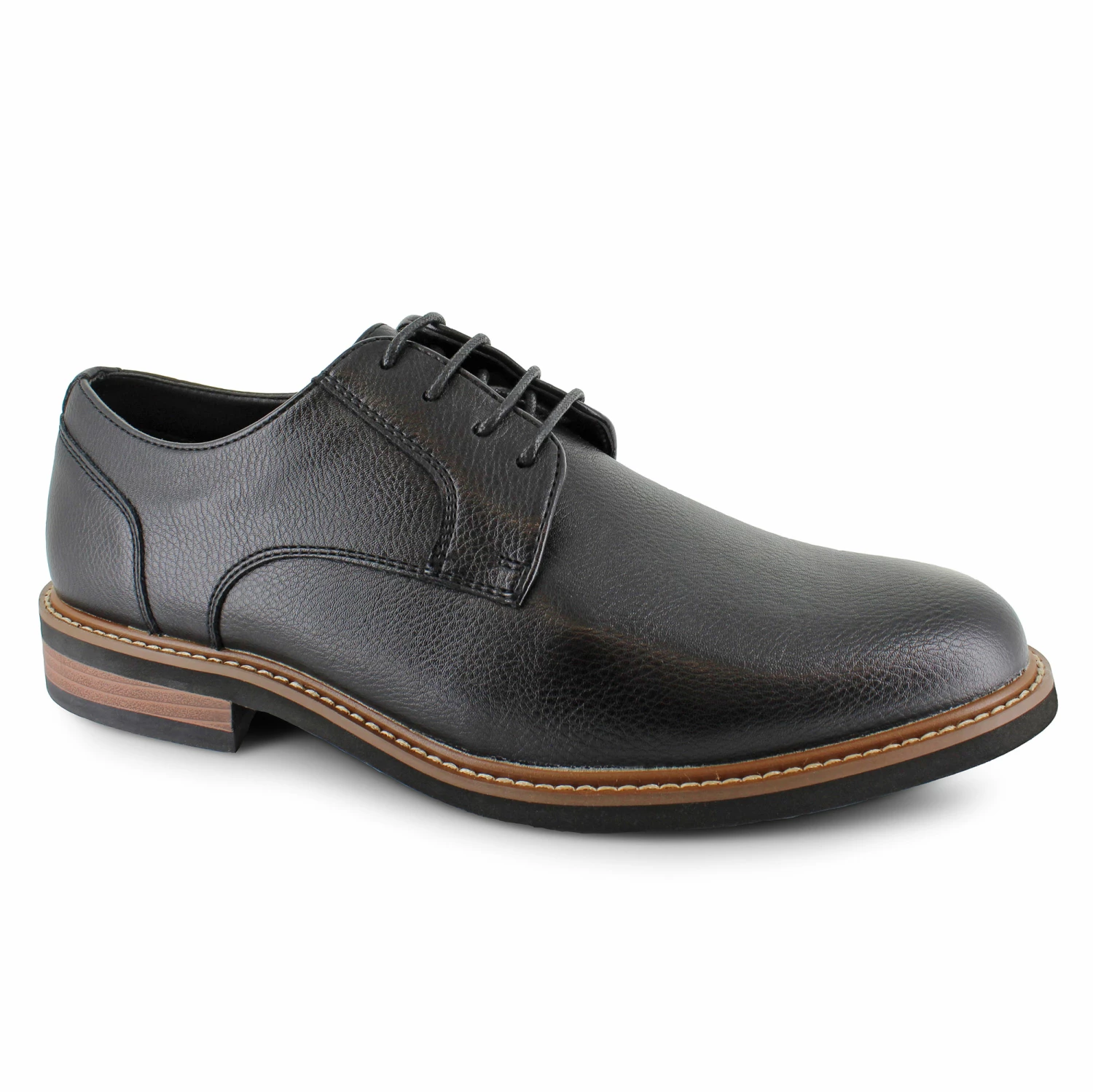 Dress to impress with the Oliver Mason Levi. This plain-toe shoe is crafted with a tumbled synthetic leather upper for a handsome oxford that’s sure to impress. The lace-up front closure keeps you secure in place while a cushioned insole provides lasting comfort and support throughout the day. The lightweight outsole ensures traction and stability to keep you moving throughout the day.