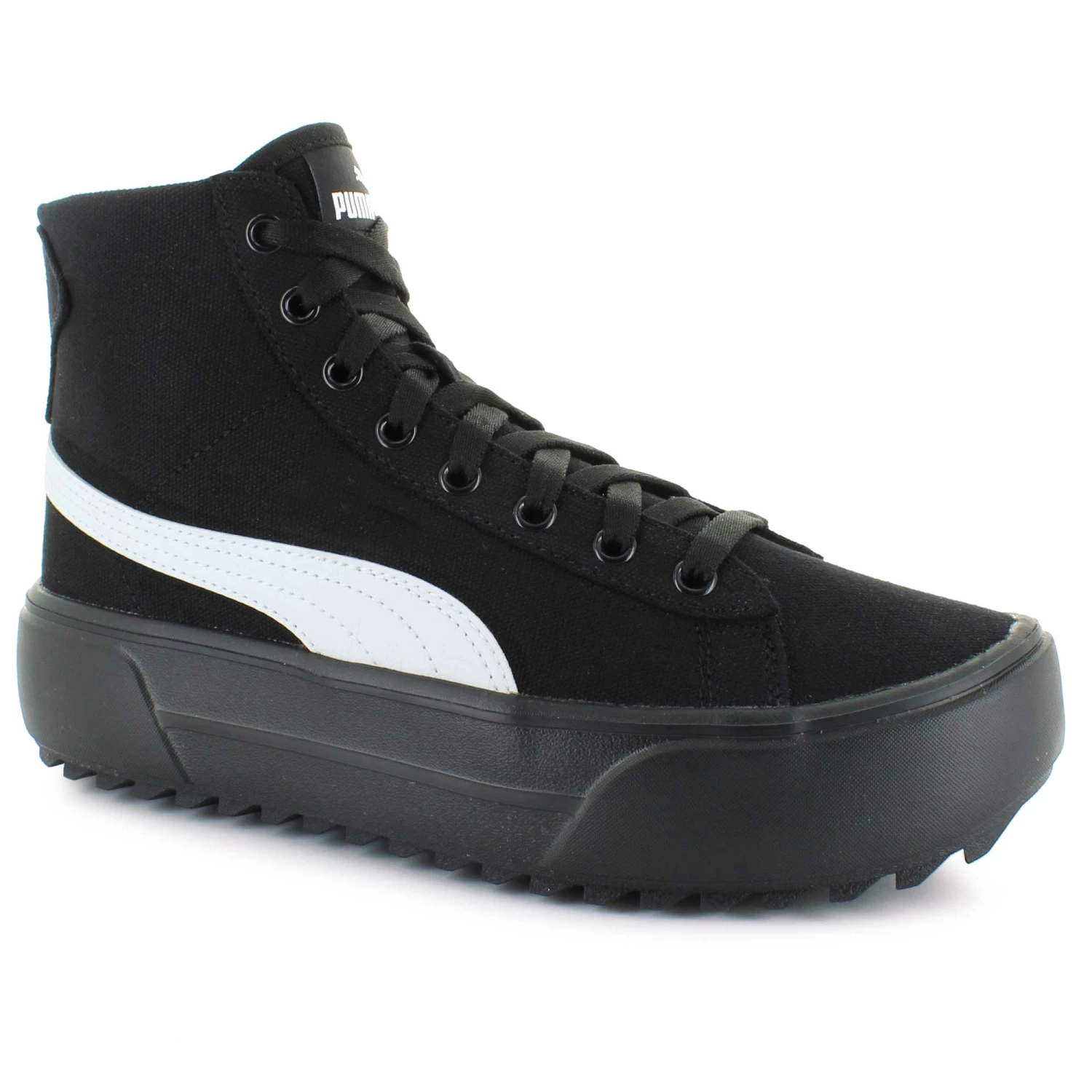 Take your sporty look to new heights with the PUMA Kaia Mid CV. This sleek style features a canvas upper in a hi-top style. The platform rubber traction outsole will provide a little lift.