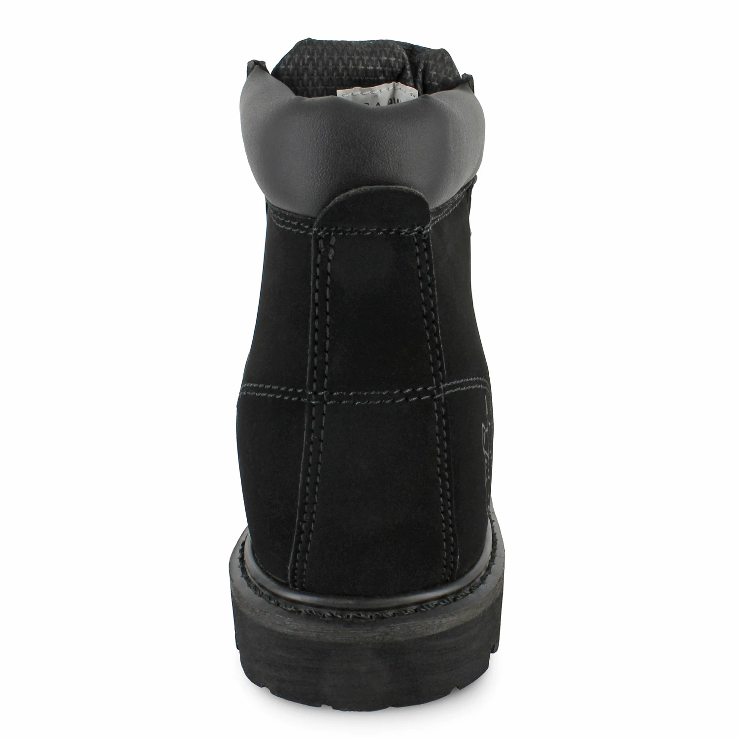 Work hard while looking stylish and staying comfortable when you gear up with the Rhino 6″ Steel-Toe. Crafted for utility with a durable nubuck leather upper, this 6″ boot features a steel safety toe. The reinforced lace-up front closure combined with a padded collar and tongue keep your feet locked in place and ready for action, while a comfort insole ensures lasting comfort and support. The durable rubber traction outsole provides reliable oil and slip resistance to get you through the day.