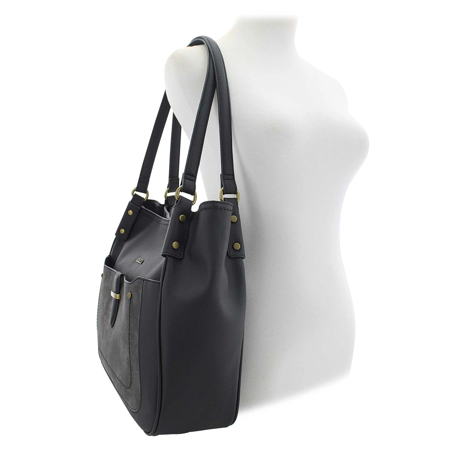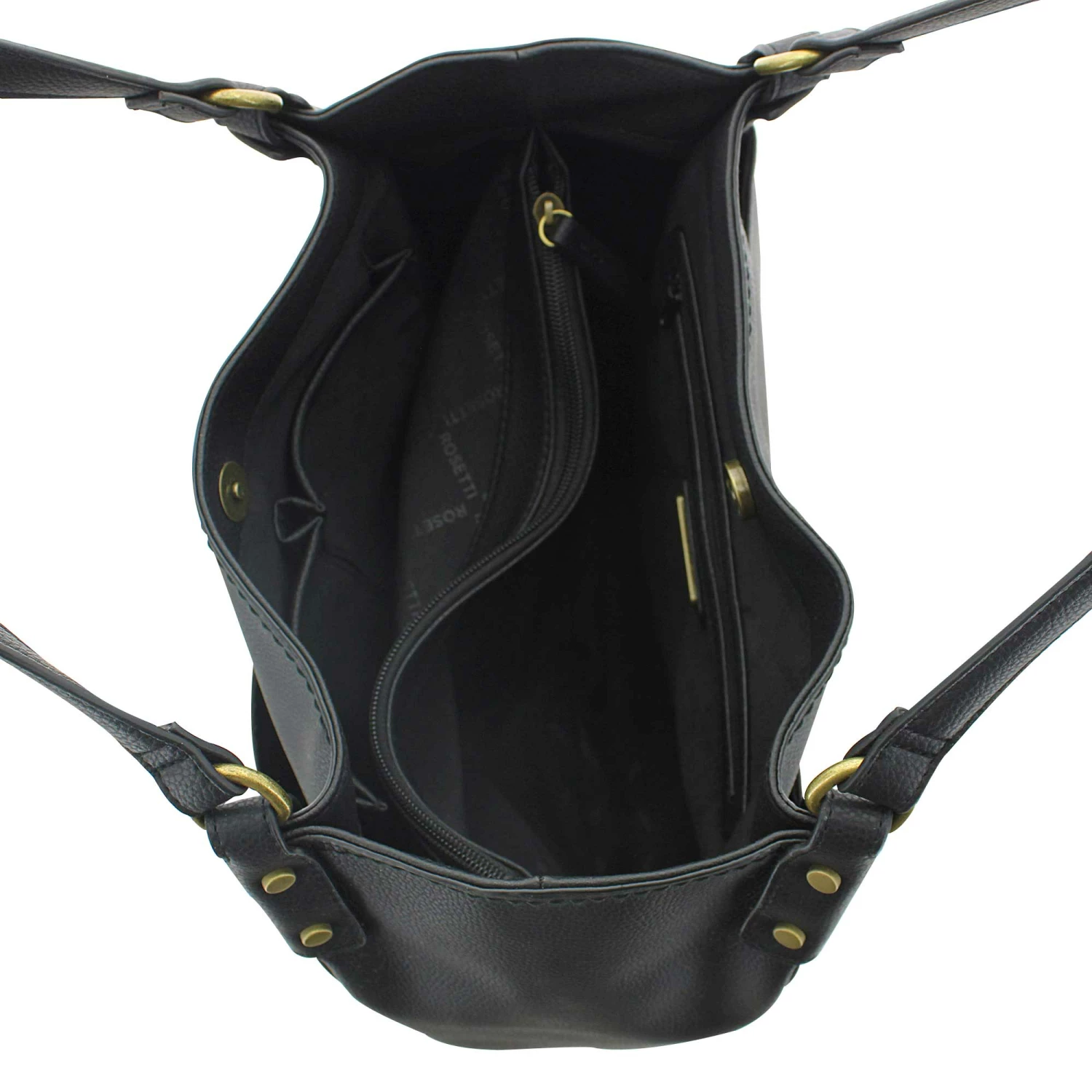 This spacious multi-compartment satchel by Rosetti is certain to suit most of your needs for carrying your personal effects with you. It offers 2 open compartments divided by a zippered compartment that help with keeping your items organized. Keep your things close at hand with this stylish choice. Shop SHOE SHOW MEGA today.
