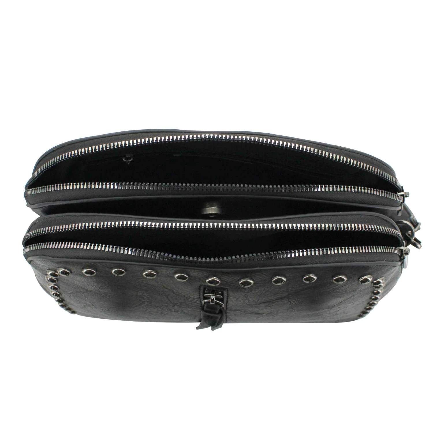 - double zip-top closure compartments separated by an open magnetic-close compartment