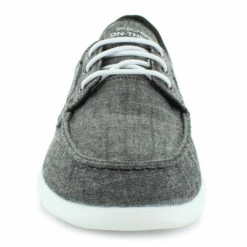 - pull-on boat shoe design with stretch laces