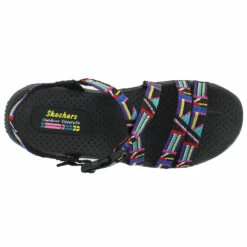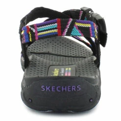 Effortless boho style comes with supportive comfort in the Skechers Reggae – Native Vibez sandal. This open-toe sandal features a colorful web fabric and synthetic strappy slingback slide design with a buckle closure and a cushioned comfort footbed.