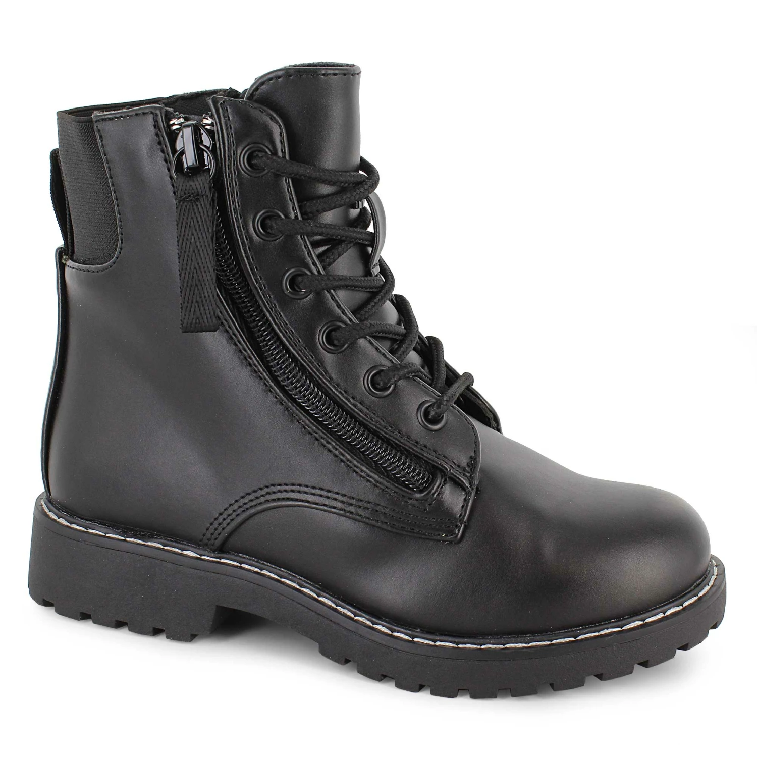 Stand strong and tall in this trendy Steve Madden combat-like boot. The lace-up front offers plenty of style, but the convenient side zipper s keep these easy to access. Zip them up anytime you want to show off big personality.