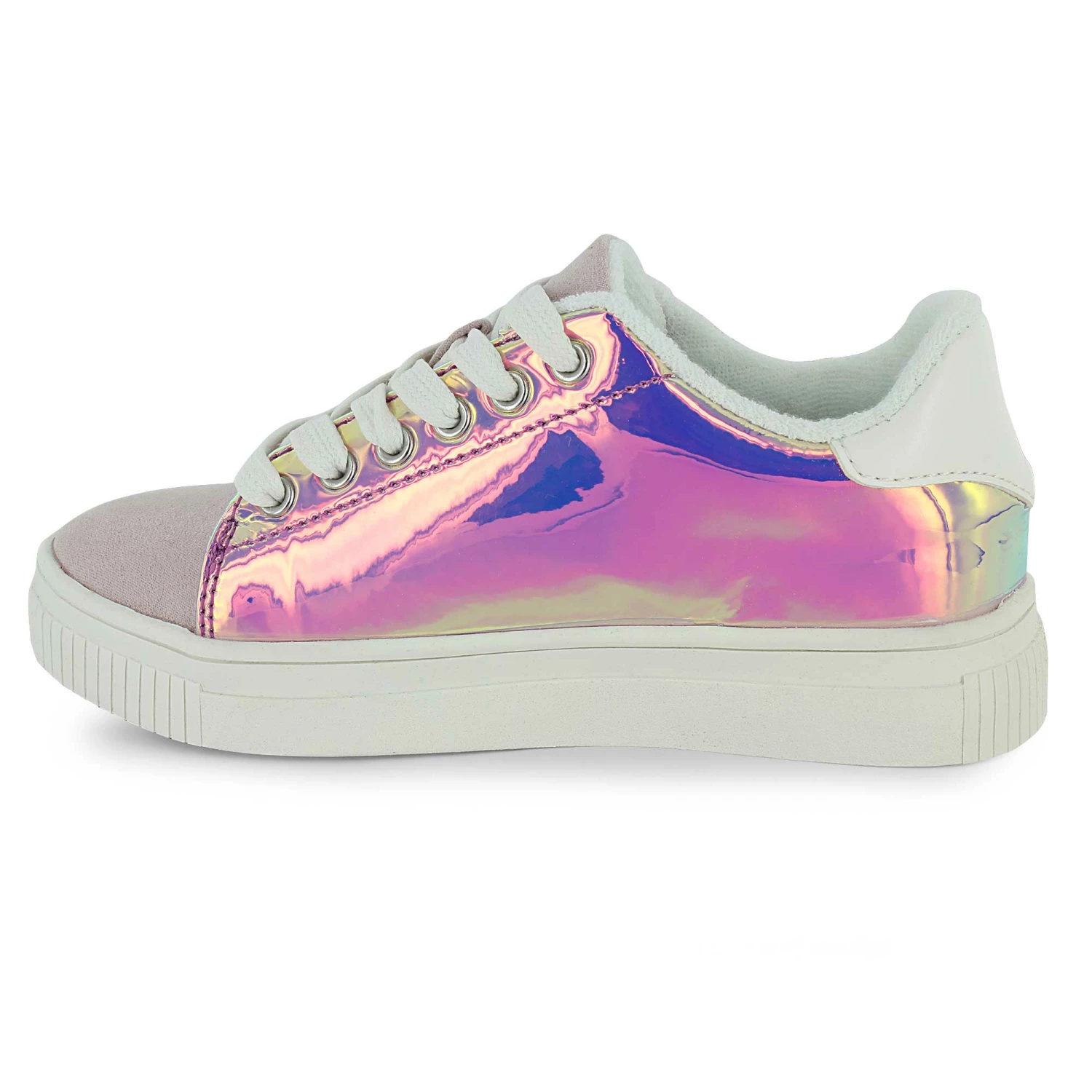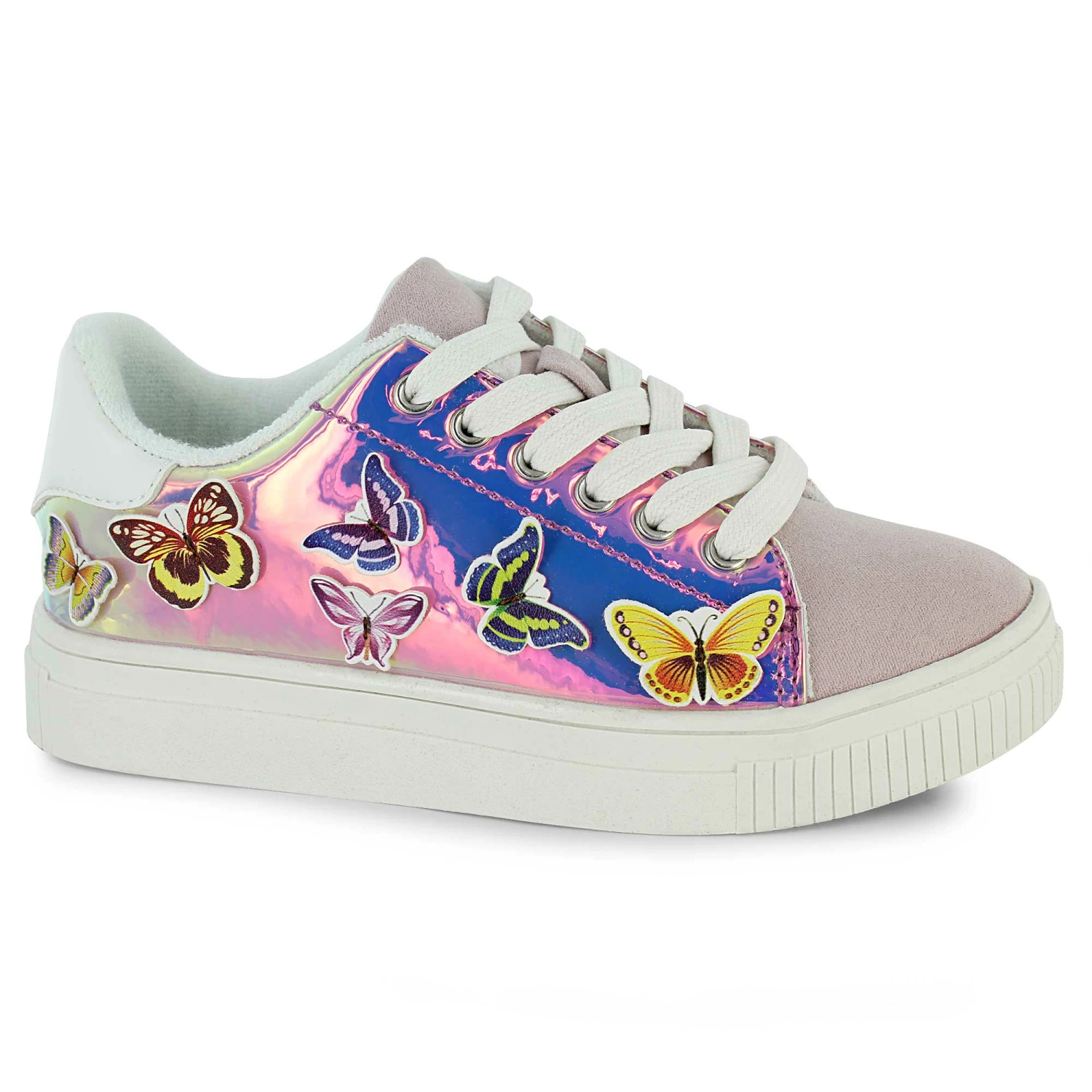 Put a fun touch of color into your look with butterfly-themed casuals by Steve Madden. These iridescent shoes are sure to catch the eye in the sunlight or in the classroom. With 3D butterfly accents decorating the sides, this statement pairs perfectly with jeans shorts, skirts and more.