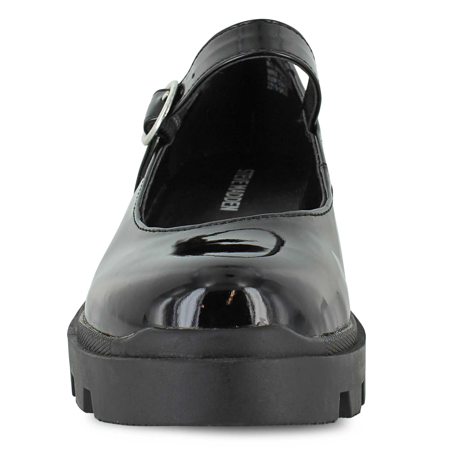 Start the school day in classic mary jane shoes by Steve Madden. The glossy upper and strap combo pairs perfectly with uniforms or other formal wear. A bendy sole helps keep you comfortable throughout the day.