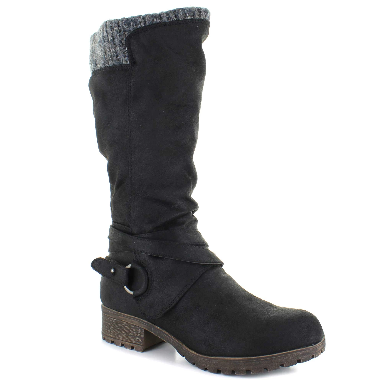 Experience plush fall comfort with the Sugar Infinity boot. This style features strap details with a sweater knit collar for cozy comfort. The inside zipper closure will provide an easy on and off.
