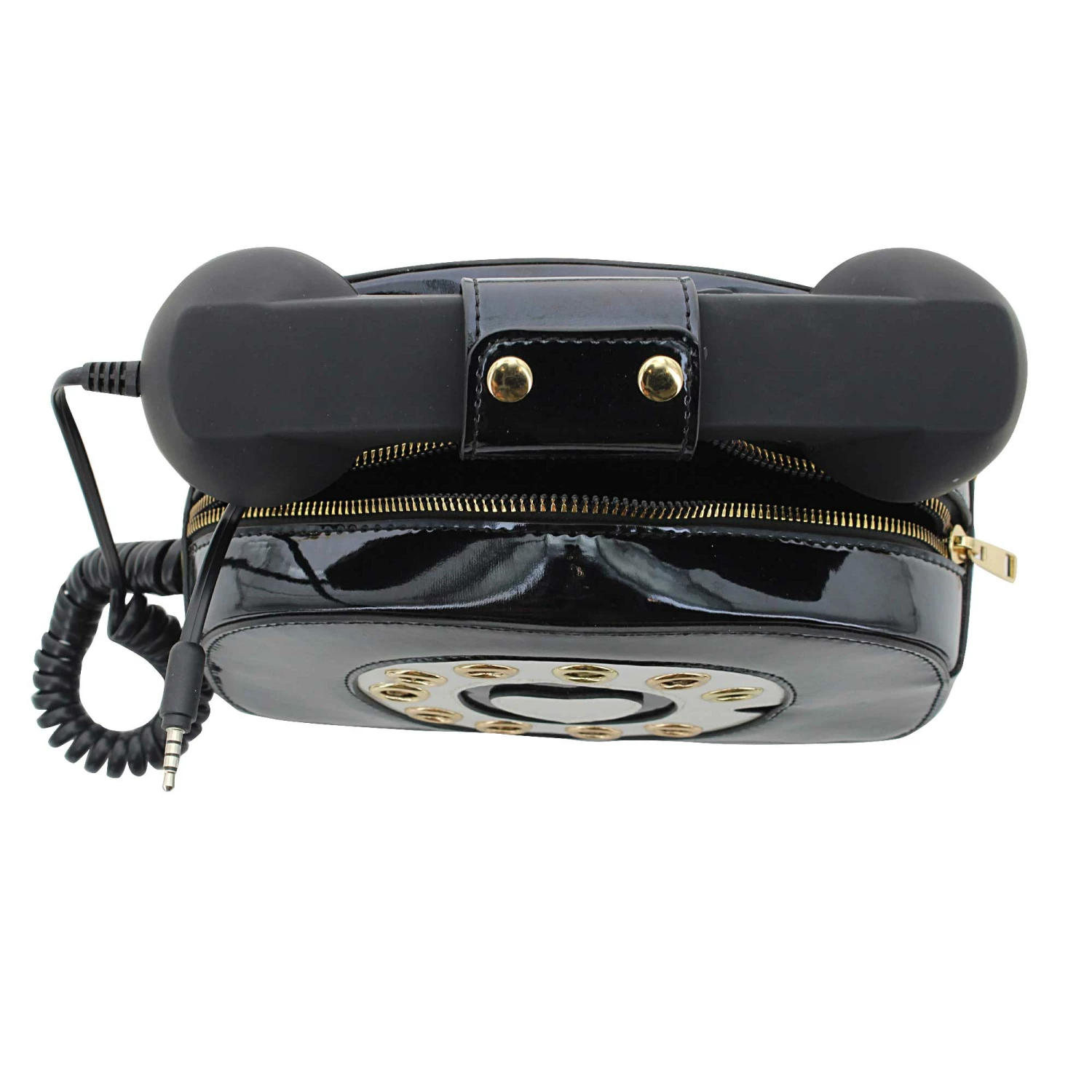 Ring-a-ling-a-ling! It’s a break-through in fashion calling with it’s latest trending style. This awesome telephone bag combines old school rotary style with modern technology. Just plug the handset into your auxiliary port on your cell phone and you’re connected. Shop SHOE SHOW MEGA today.